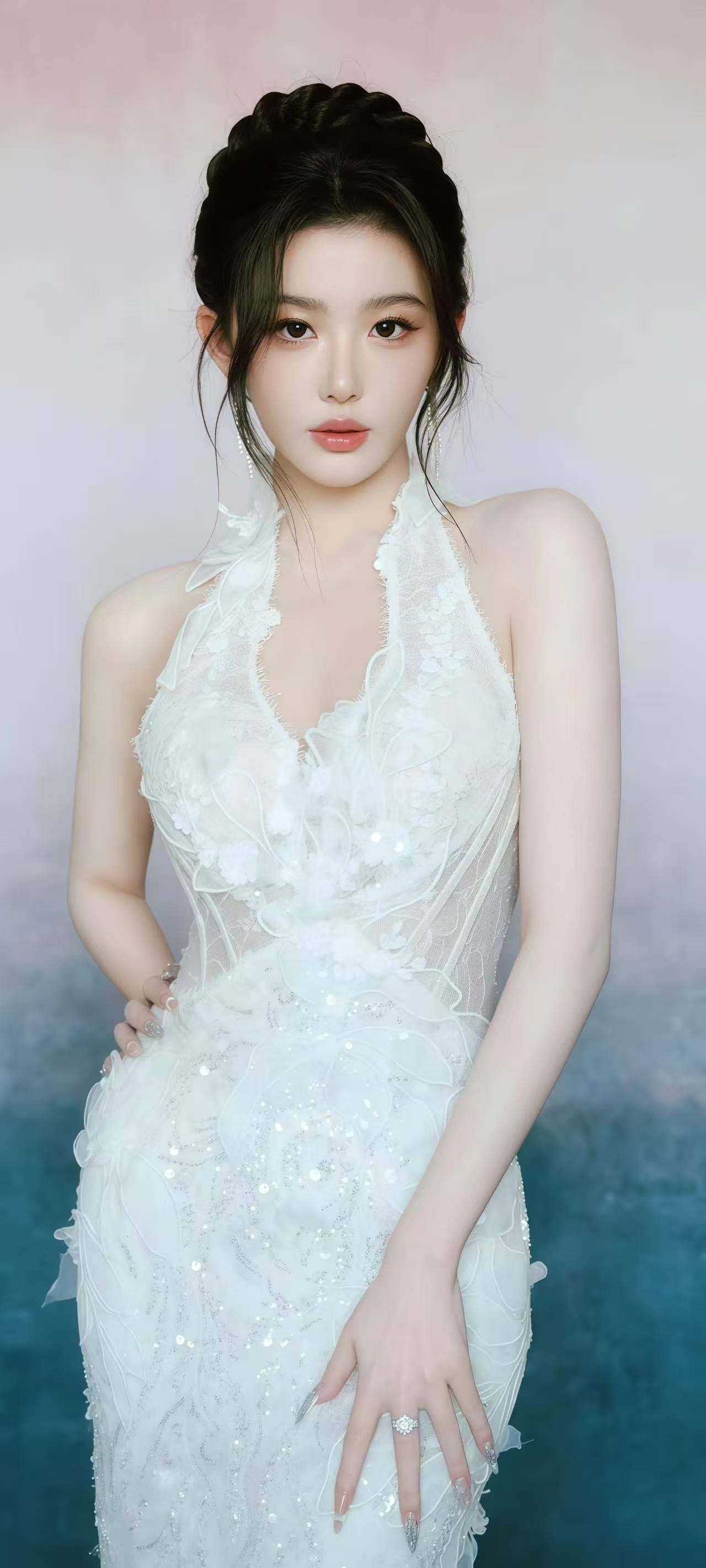 孔雪儿这组照片简直让人挪不开眼!一会儿是穿着白色挂脖长裙的仙气飘飘,一会儿又变成穿着米白短裙的元气少女,两种风格切换自如,不愧是能唱能跳的全能爱豆。先看她那条白色挂脖长裙,也太会了吧!领口是深V设计,上面缀满了立体的白色花朵,像把一整个春天都穿在了身上。裙摆是鱼尾形状的,走起路来像条优雅的小白鱼,裙身上的亮片在光线下闪着细碎的光,配上她精致的编发和银色流苏耳环,活脱脱就是从童话里走出来的公主。她单手叉腰的样子,既温柔又带着点小性感,眼神清澈得像山泉水。换身造型又让人眼前一亮!米白色的无袖短裙,胸前三个金色方扣特别吸睛,配上她那头乌黑的长卷发,瞬间从仙女变成了元气少女。她靠在白色储物柜旁,双腿修长笔直,黑色长靴更显得腿又细又长。脸上带着淡淡的微笑,金色圆形耳环和衣服上的方扣形成呼应,整个人都在发光。最绝的是她披着白色衬衫的那张,长卷发被风吹得微微凌乱,珍珠项链在颈间闪着光,眼神里带着点慵懒的魅惑。一只手抓着衬衫的领子,另一只手自然垂落,指甲上还做了精致的闪钻美甲,连指尖都在散发魅力。这种又纯又欲的风格,大概只有孔雪儿能驾驭得这么完美。平时看孔雪儿跳舞时又酷又飒,没想到穿起白色衣服来这么有反差萌。无论是仙气飘飘的长裙,还是元气满满的短裙,她都能穿出自己的味道。尤其是她那双眼睛,又大又有神,笑起来像弯弯的月牙,不笑的时候又带着点清冷,这种百变的气质真的太圈粉了。都说白色是检验颜值的标准,孔雪儿这次算是把白色穿出了新高度。她不是在简单地穿衣服,而是用不同的造型讲述不同的故事,一会儿是温柔的公主,一会儿是元气的少女,一会儿又是慵懒的女神。这种可盐可甜的百变魅力,大概就是孔雪儿最让人着迷的地方吧!