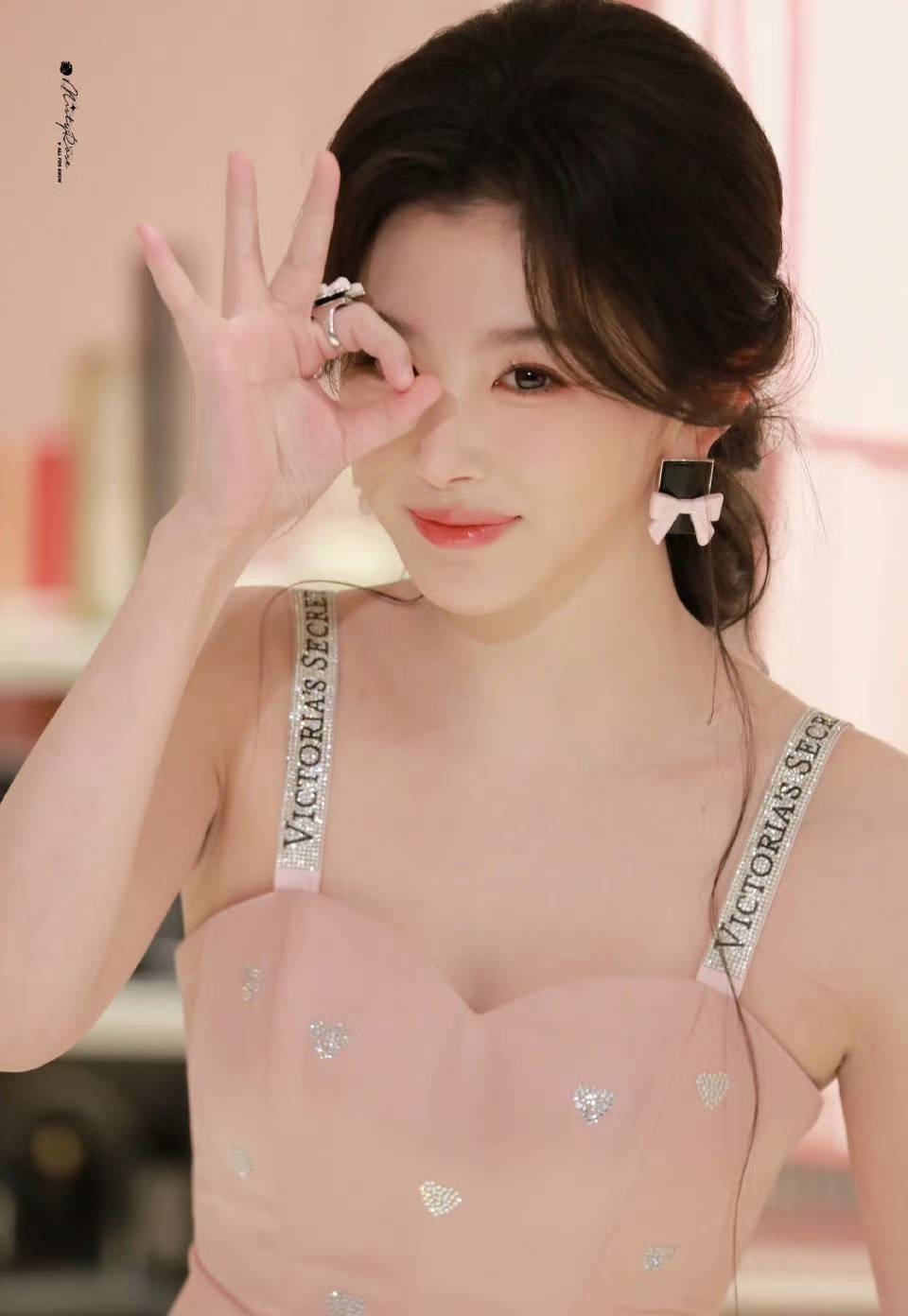 孔雪儿粉色吊带裙元气甜美 妆容精致魅力四射