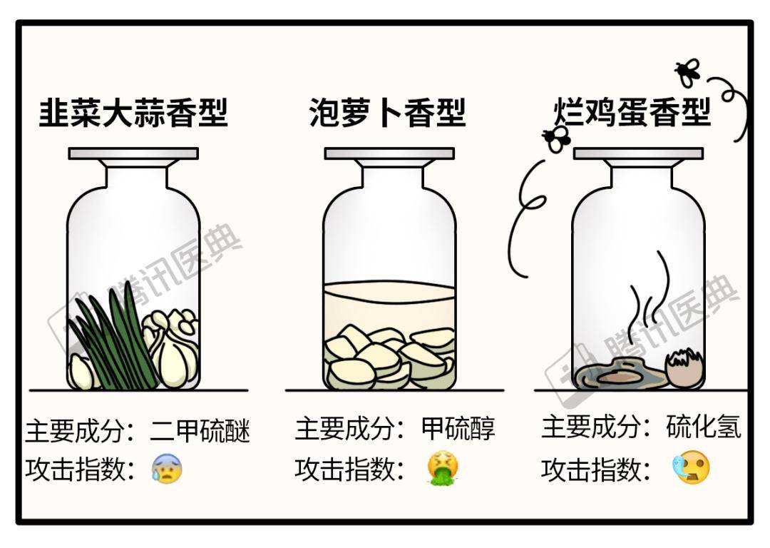 臭味气体:主要来自含硫化合物,如硫化氢,饮食中蛋白质较多或存在便秘时气味更浓烈。