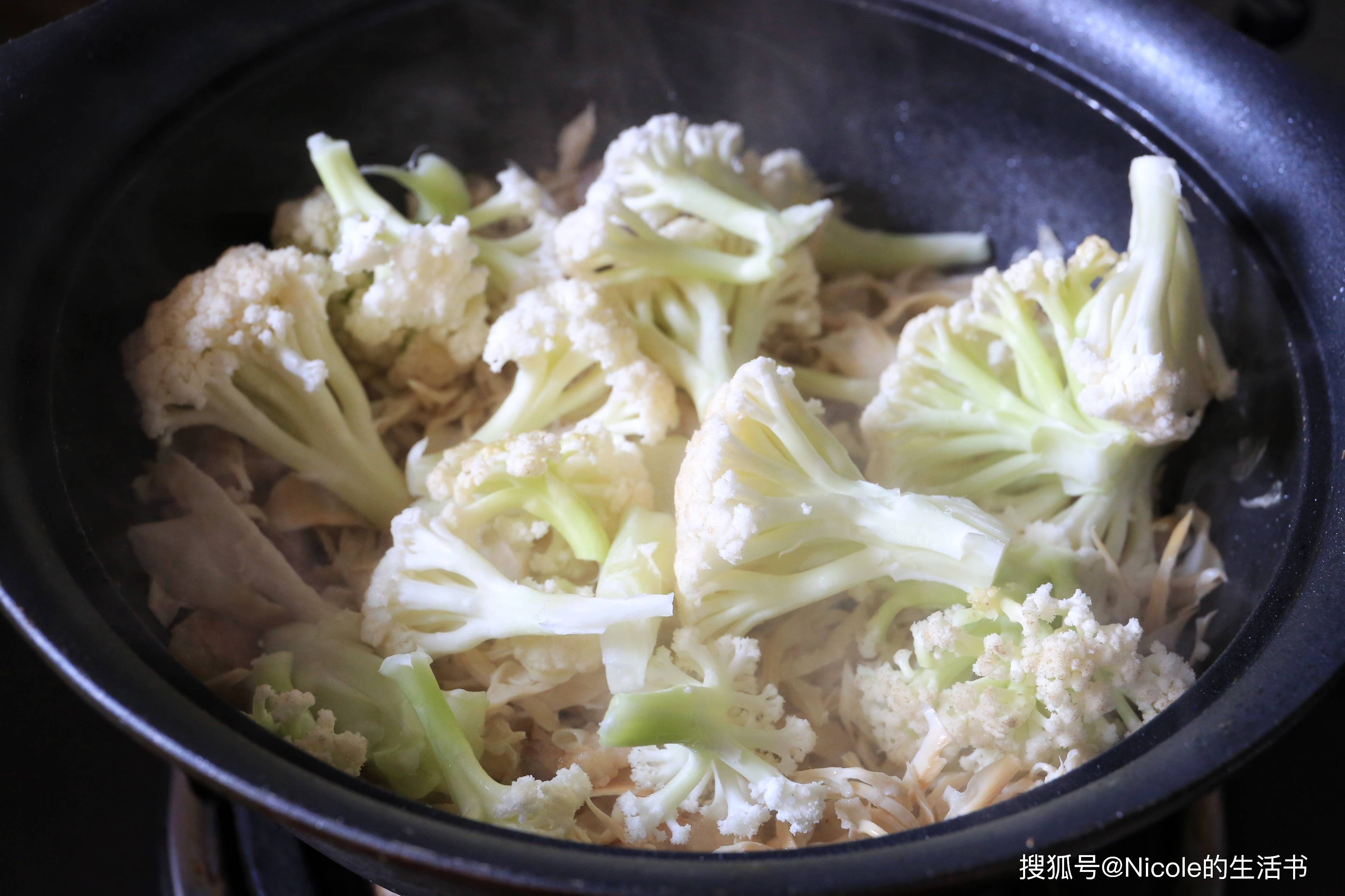 5、放入菜花;