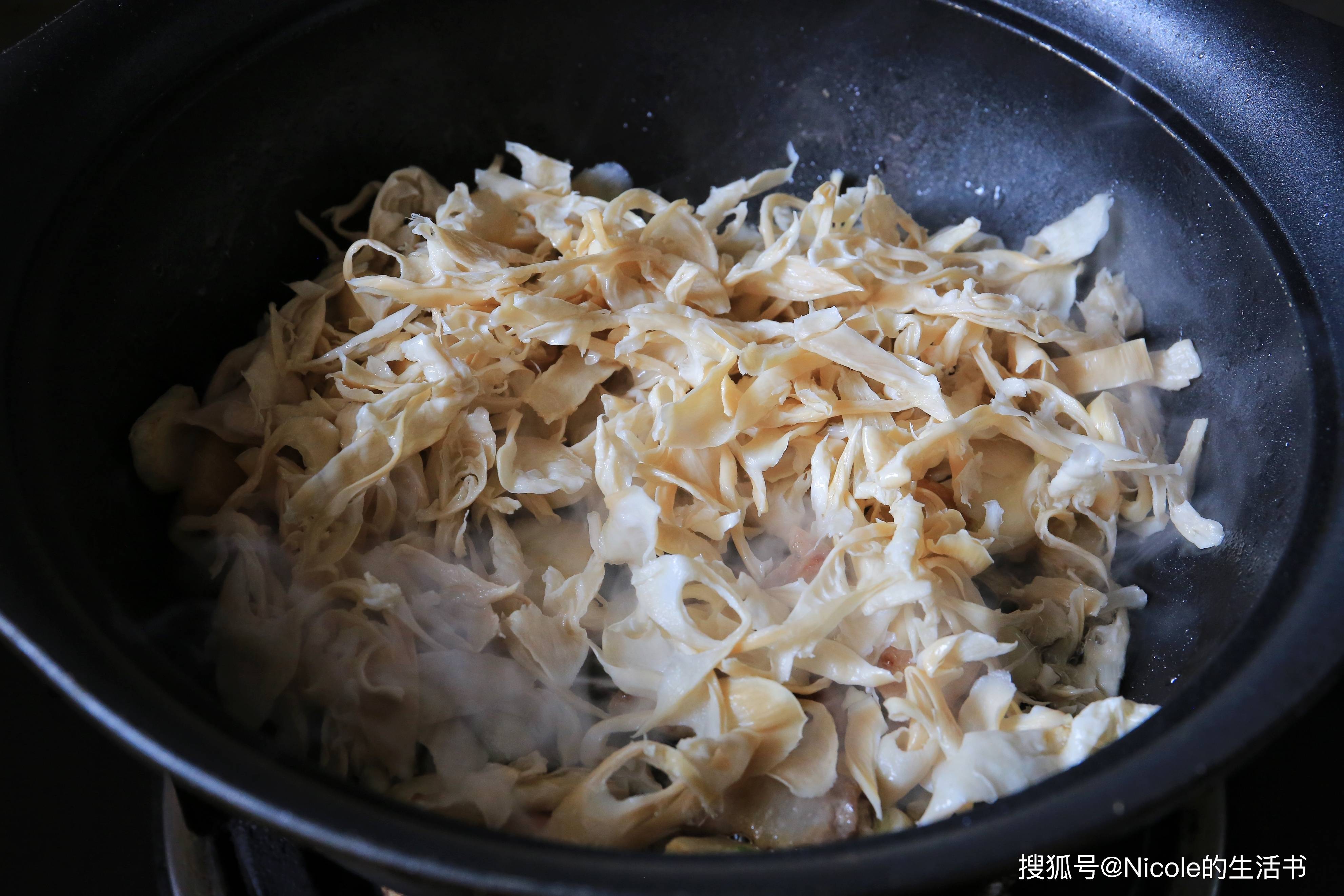 4、再放入笋干炒匀;
