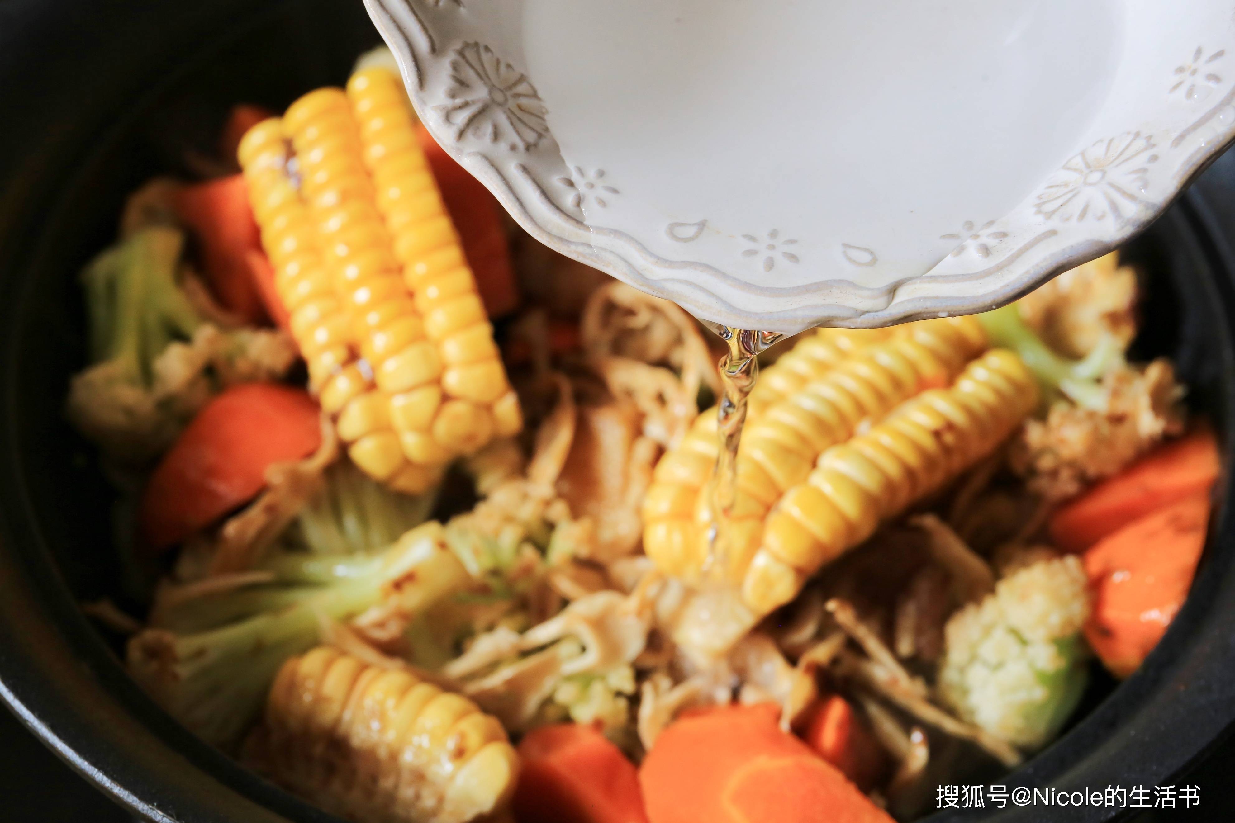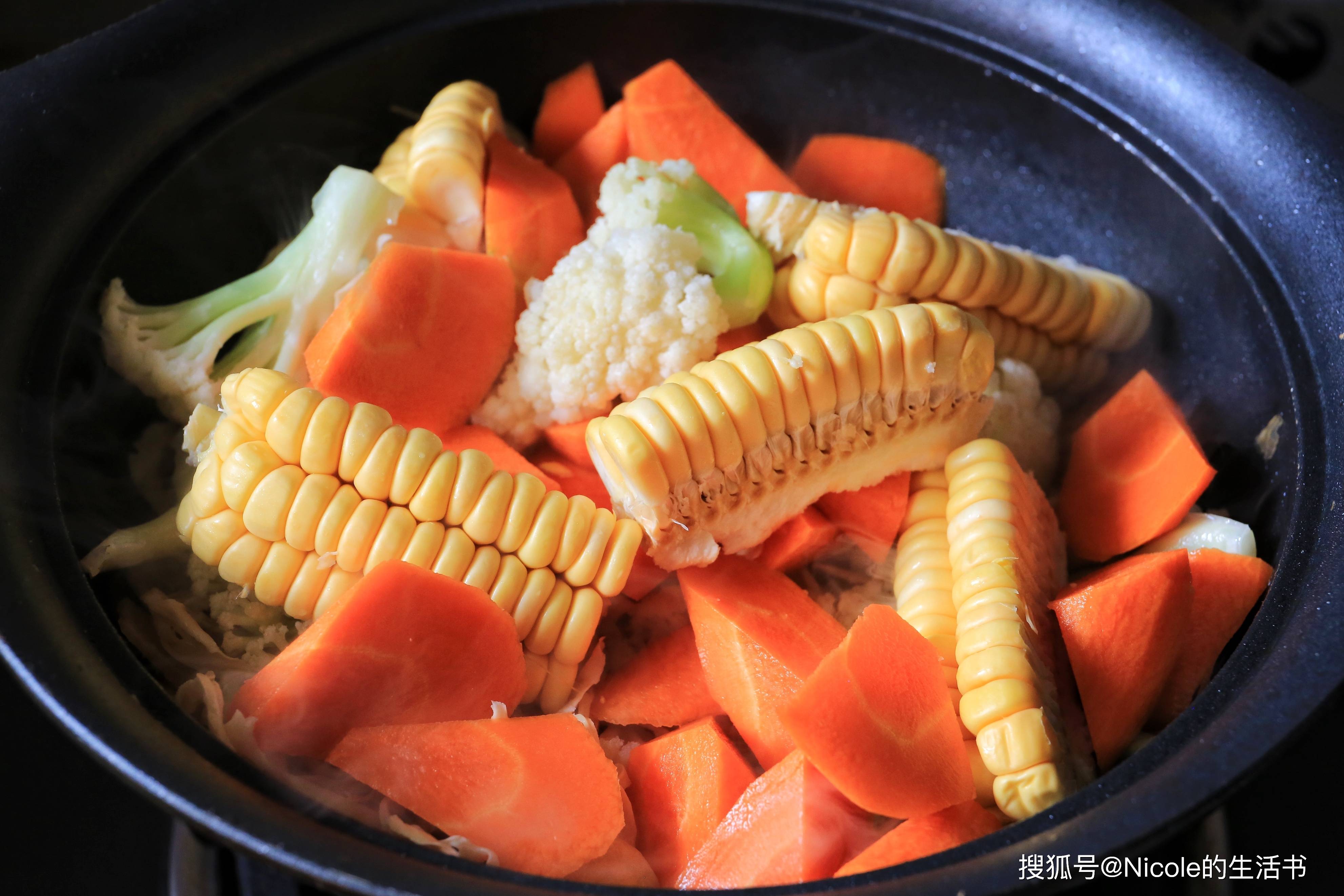7、放入胡萝卜和玉米;