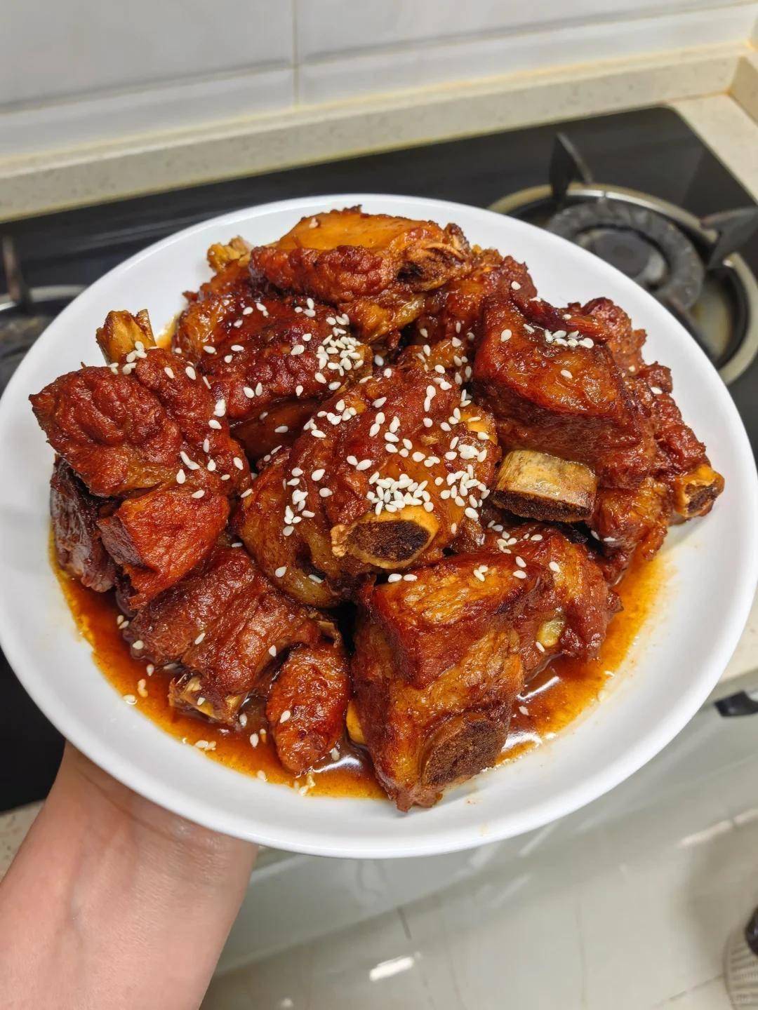 好吃的红烧排骨是"慢着急"的产物。加开水没过排骨后,一定要先大火煮沸再转小火,我习惯用手机定时45分钟。有回追剧忘了时间,揭开锅发现汤汁收得太干,排骨在锅底摆出焦黑的抗议表情。