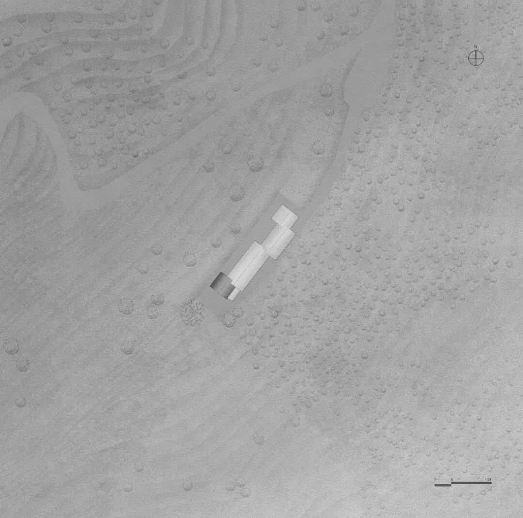 轻盈谦逊的姿态:新构架以轻盈谦逊的姿态融于大山,选择了类树形的伞状结构来撑起棚架,简化了传统的晒场棚架。错动的多品伞构架并置创造出了一种林下的空间感,使晒场仿佛是从山林中自然生长出来的一部分。