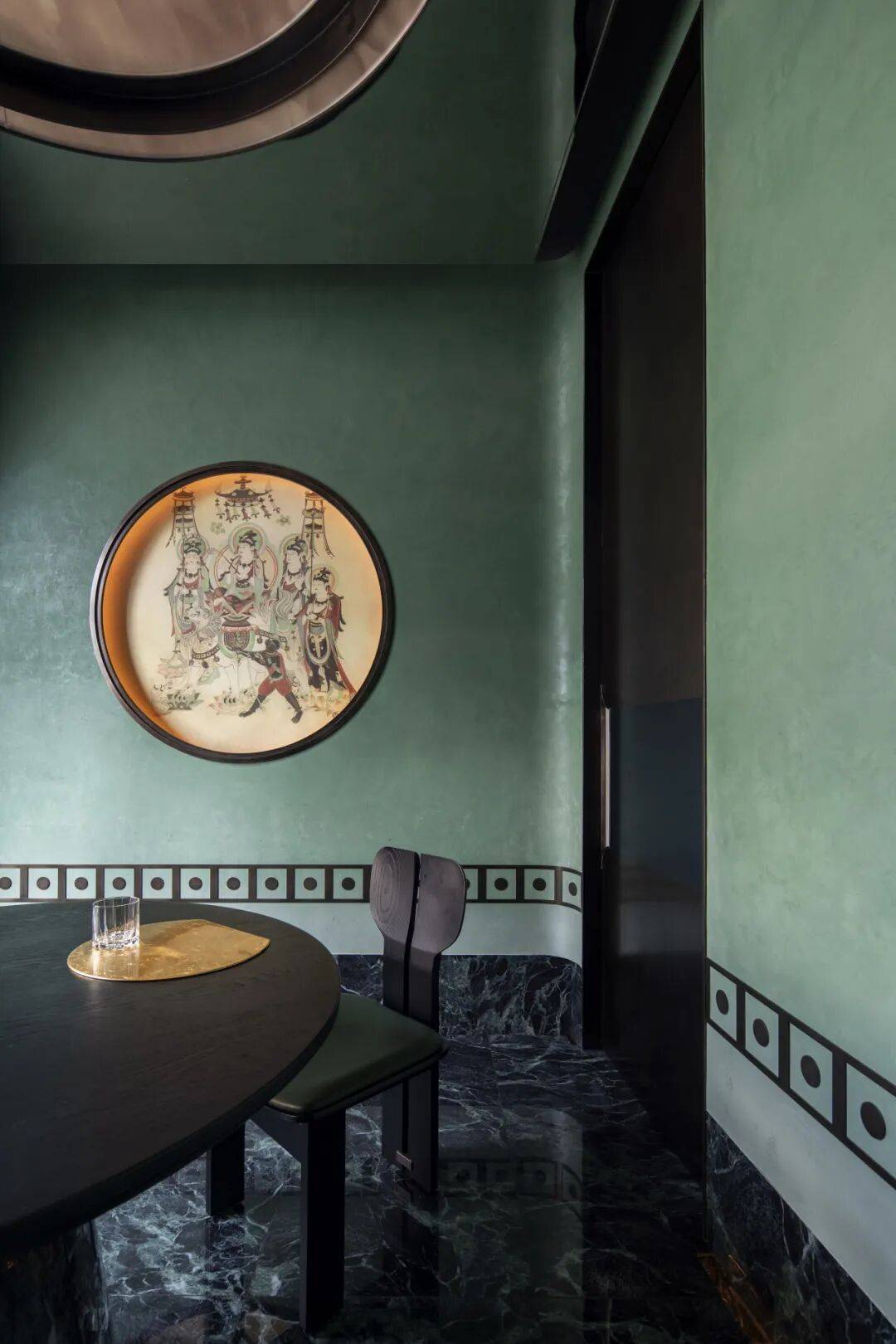《文殊经变图》主题包间:以壁画中汉藏艺术交融的独特风格为灵感,通过材质与光影的叠映再现文化互渗的意境,让宾客感受到不同文化之间的交流与融合。