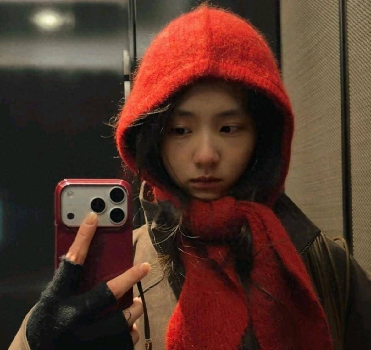 黄多多的自拍主打简约风格:红色针织帽(疑似母亲孙莉手工编织)搭配背心与牛仔中裤,低饱和色调凸显琥珀色瞳孔与标志性泪痣;另一组造型中,她穿着灰色外套,头戴红色针织帽、围着红色围巾,看上去十分可爱,素颜出镜的她皮肤细腻透亮,鼻尖因寒冷透着红晕,尽显少女本色。此外,她还晒出头戴灰色针织帽的造型,整体走简约文艺风,松弛又自然。