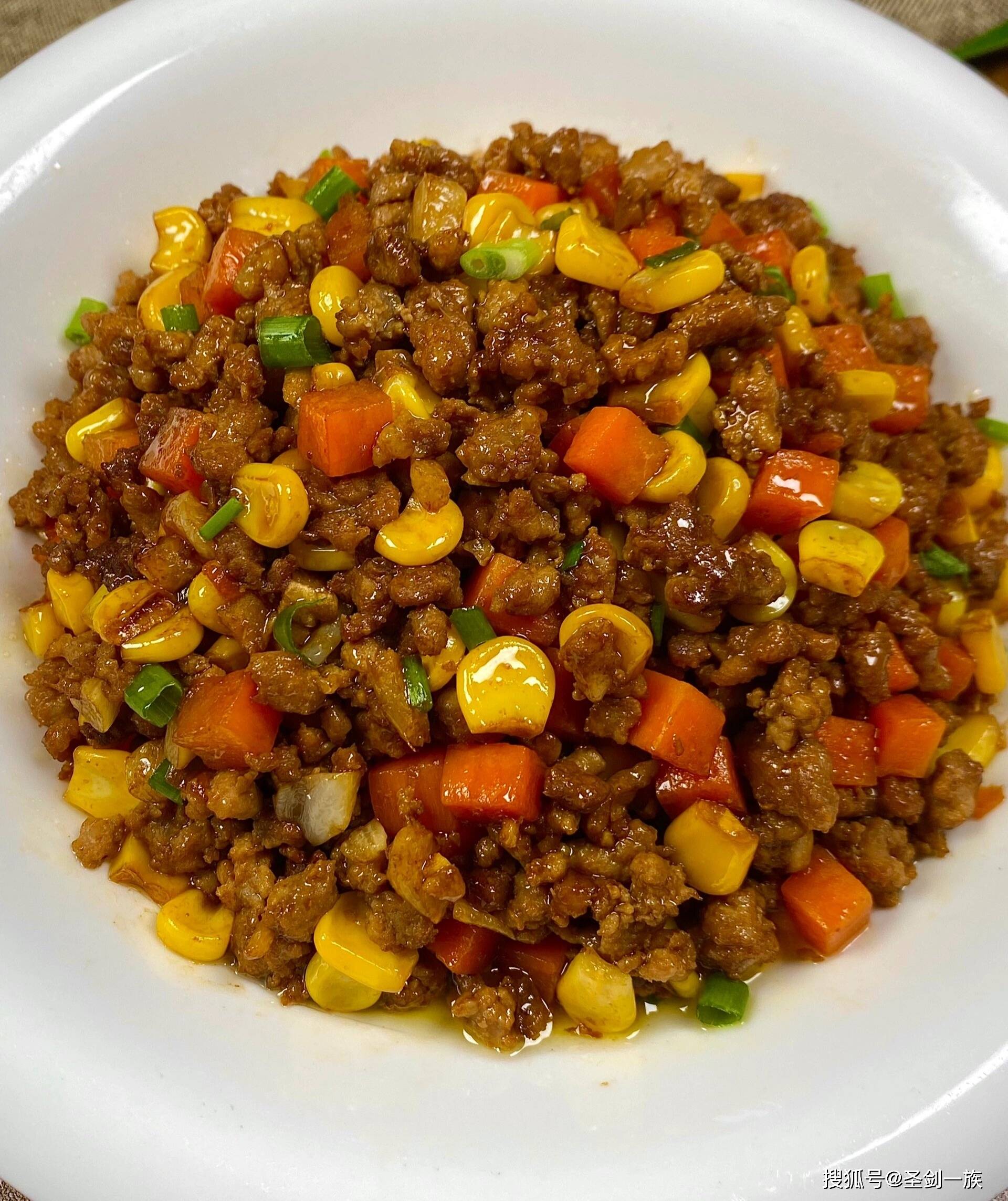 六、玉米胡萝卜炒肉末