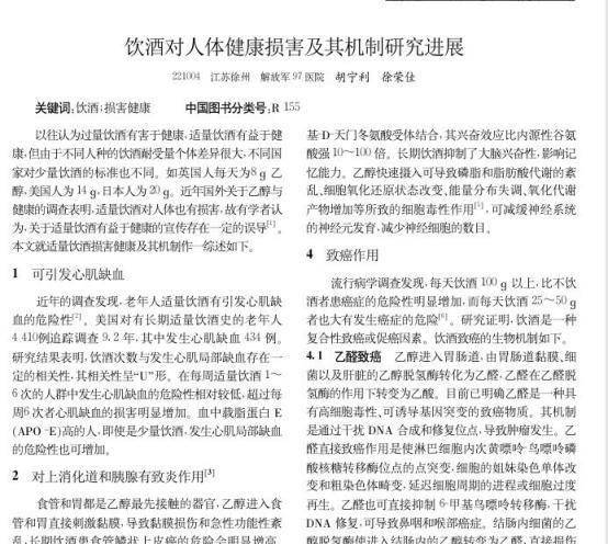 [1]胡宁利,徐荣佳.饮酒对人体健康损害及其机制研究进展[J].人民军医,2007,(11):708-709.