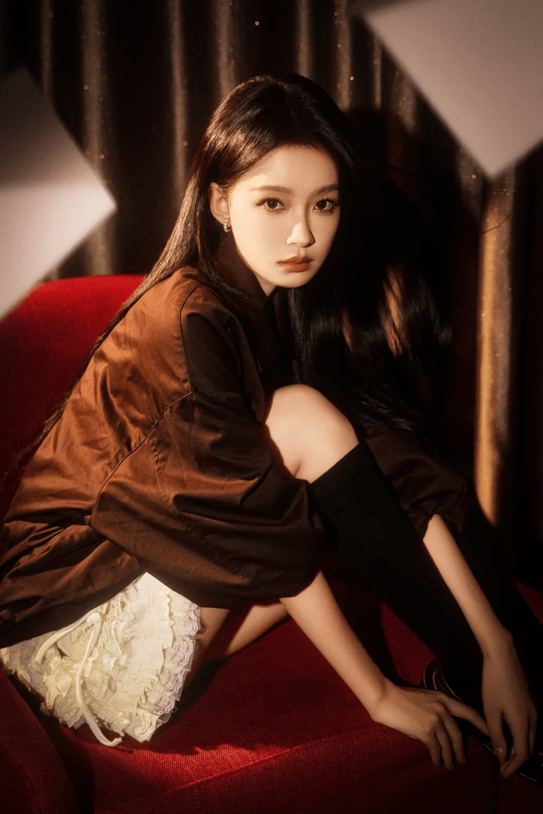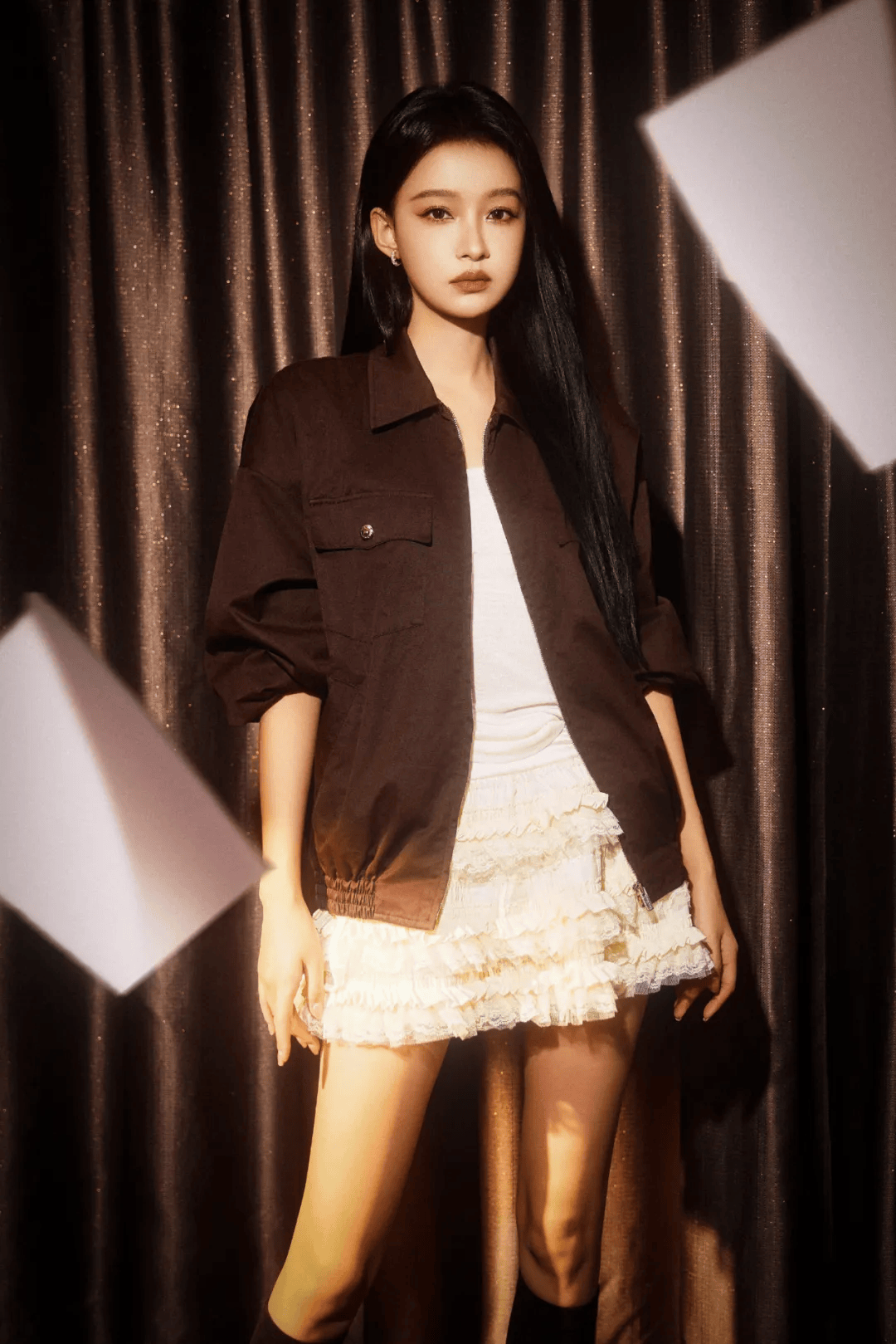 骨架大女生:学蒋欣用硬挺面料+大V领转移焦点