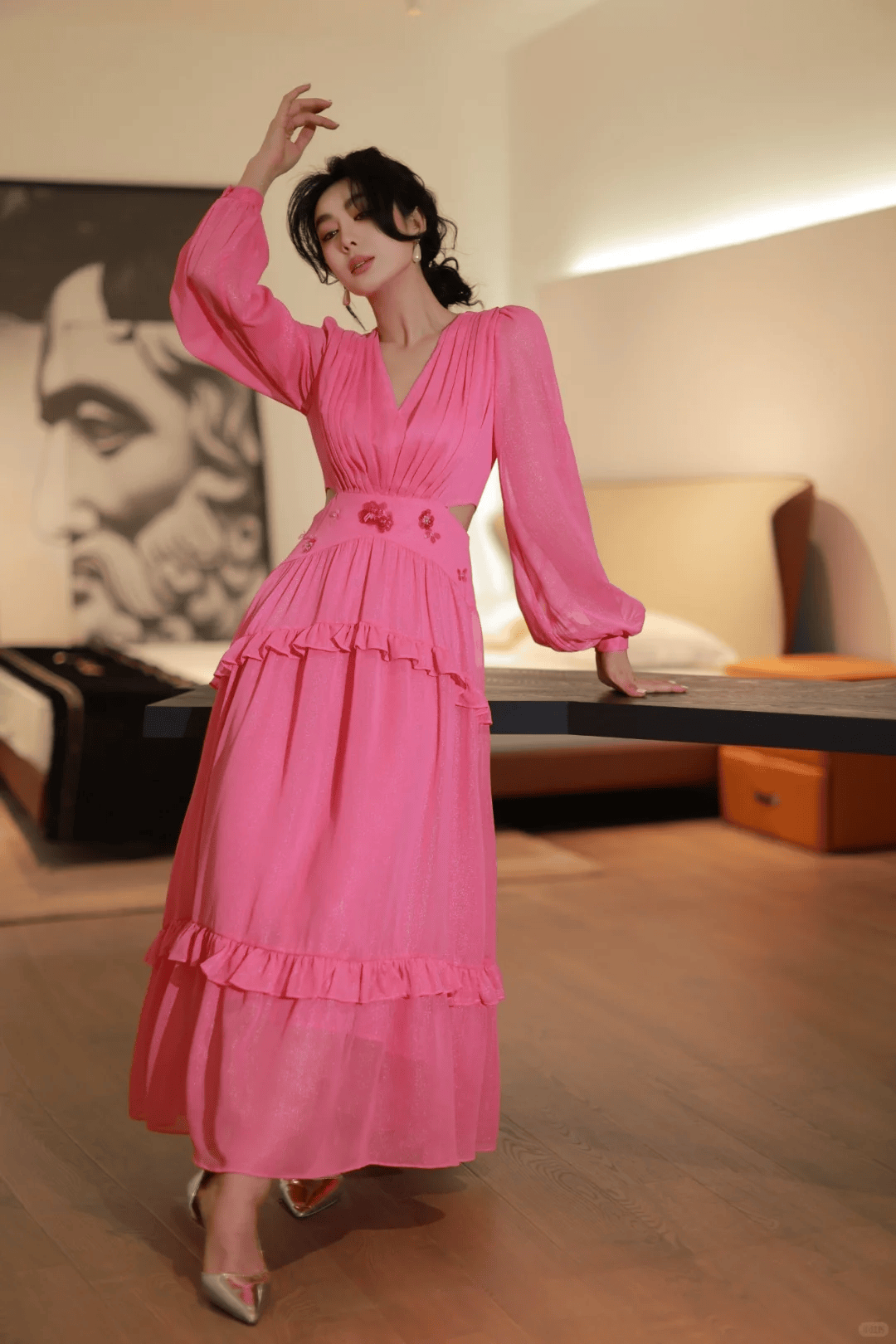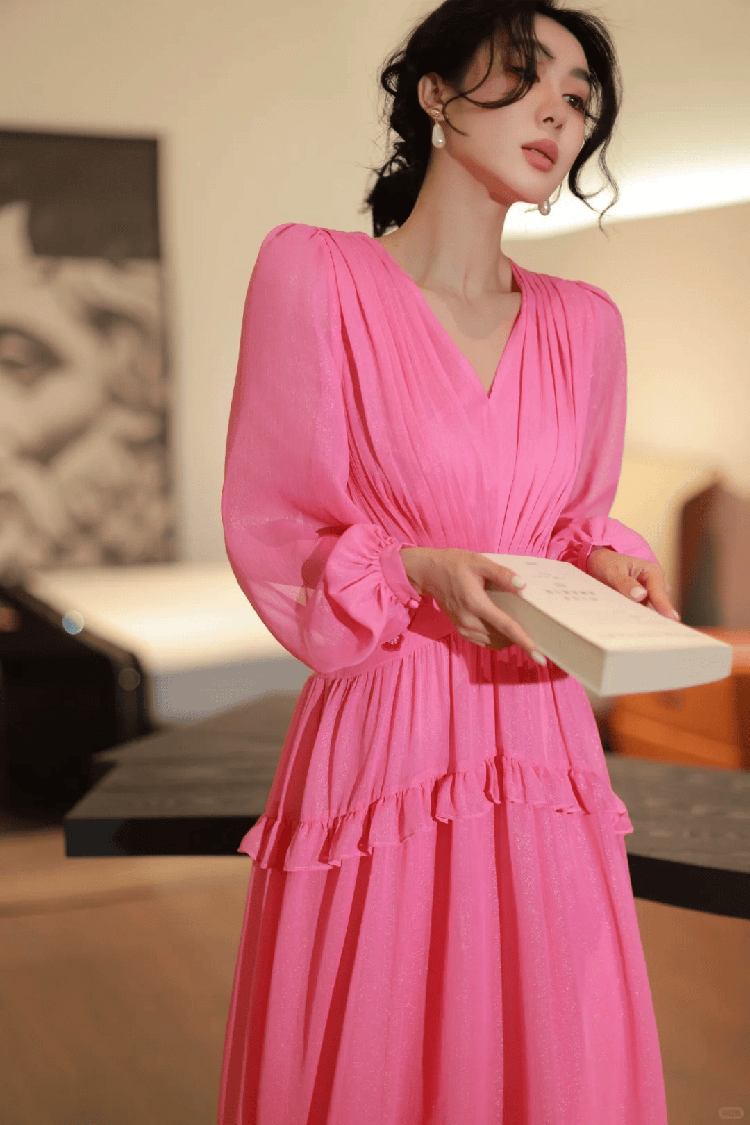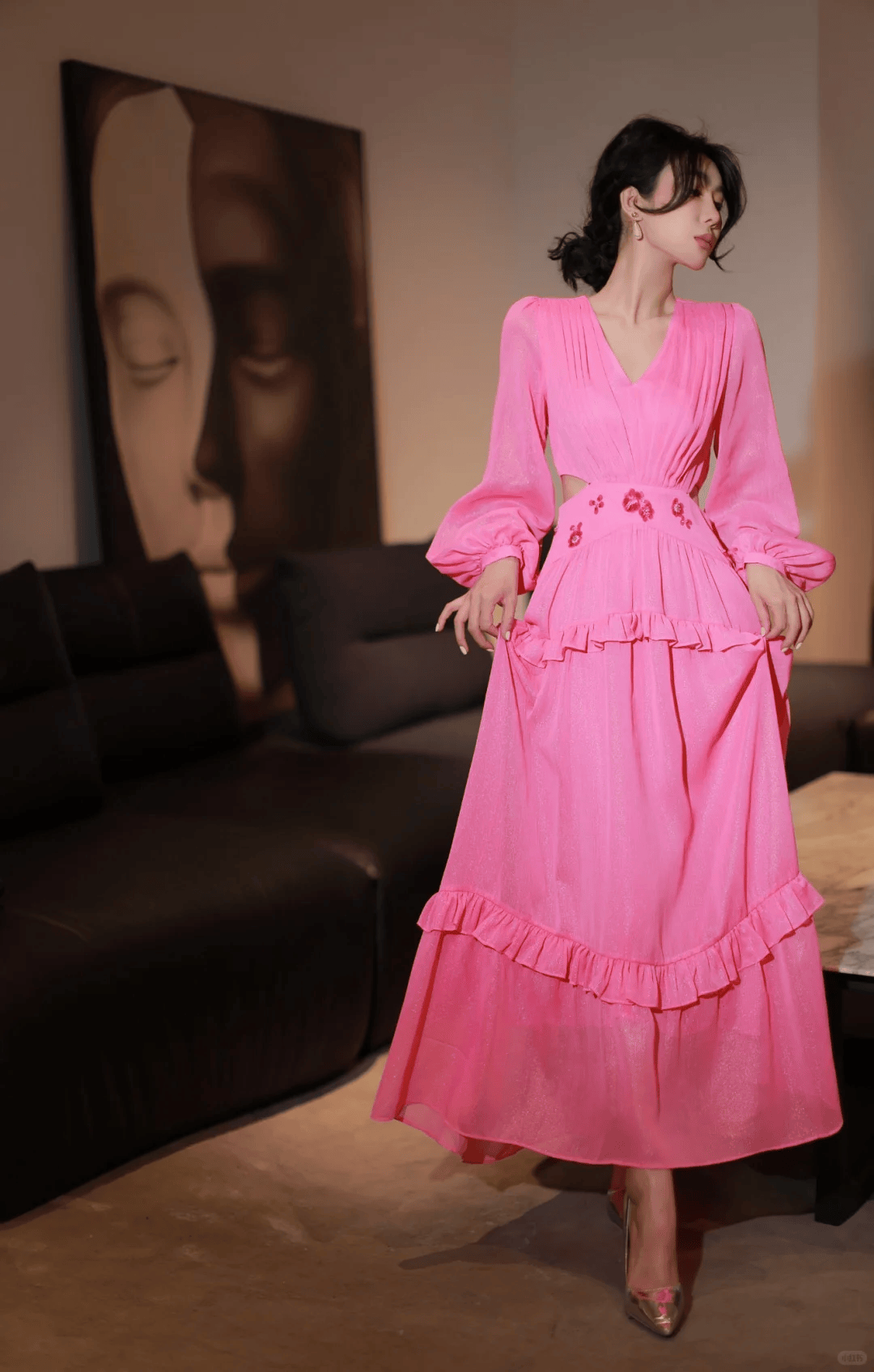 轻盈感穿搭:白色/粉色连衣裙配高腰线,视觉减龄