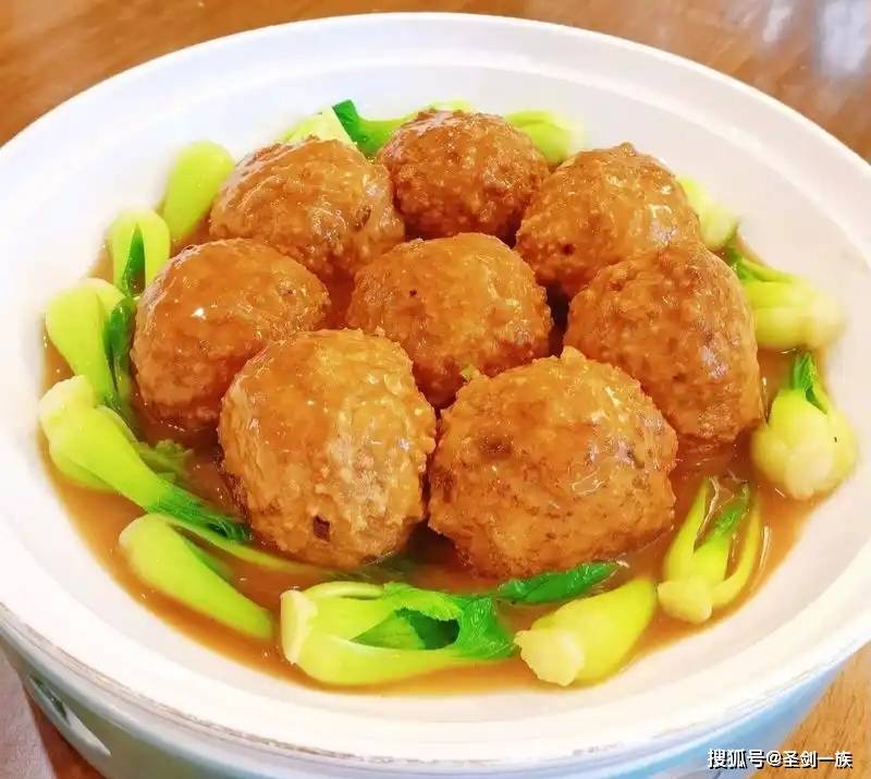食材:猪肉馅 500g(七分瘦三分肥)、马蹄6 个、鸡蛋 1 个、生姜末 1 勺、葱花 2 勺、淀粉 3 勺、生抽 2 勺、料酒 1 勺、盐适量、白胡椒粉少许、食用油、青菜适量马蹄去皮切碎,与猪肉馅混合,加入鸡蛋、生姜末、葱花、淀粉、生抽、料酒、盐、白胡椒粉,朝一个方向搅拌上劲。双手沾少许清水,将肉馅团成 4 个大小均匀的丸子(每个约 100g)。锅中倒油烧至六成热,放入丸子炸至表面金黄,捞出控油。锅中留少许底油,加入生抽、清水,放入丸子,大火烧开后转小火慢炖 20 分钟。青菜焯水后铺在盘底,将丸子和汤汁一起盛出,即可食用。小贴士:加马蹄能让丸子更脆嫩,不喜欢的可以换成莲藕;炸丸子时油温要控制好,避免外焦里生。