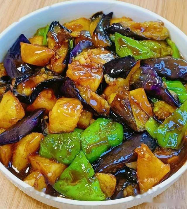 食材:土豆、茄子、青椒、葱姜蒜、生抽、老抽、盐、糖、淀粉。