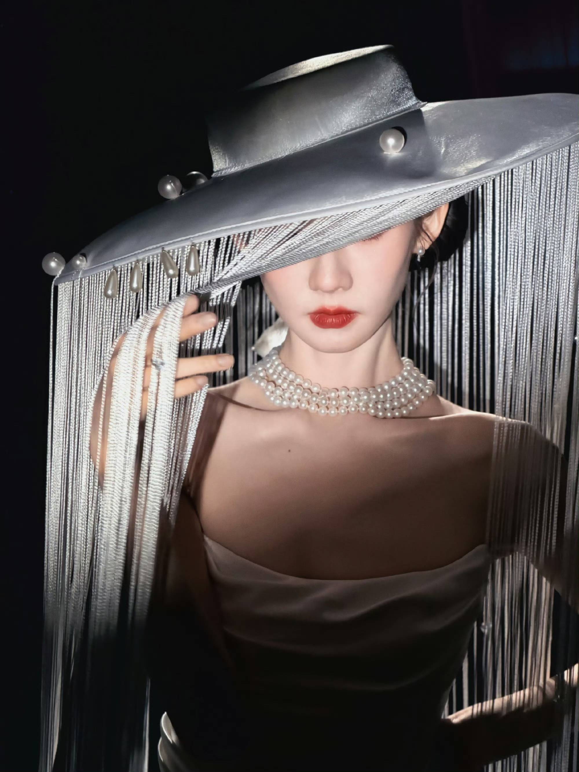 科技赋能造型:AR试妆、3D打印服饰等技术将改变造型流程,如张艺凡流苏帽的数字化设计验证。