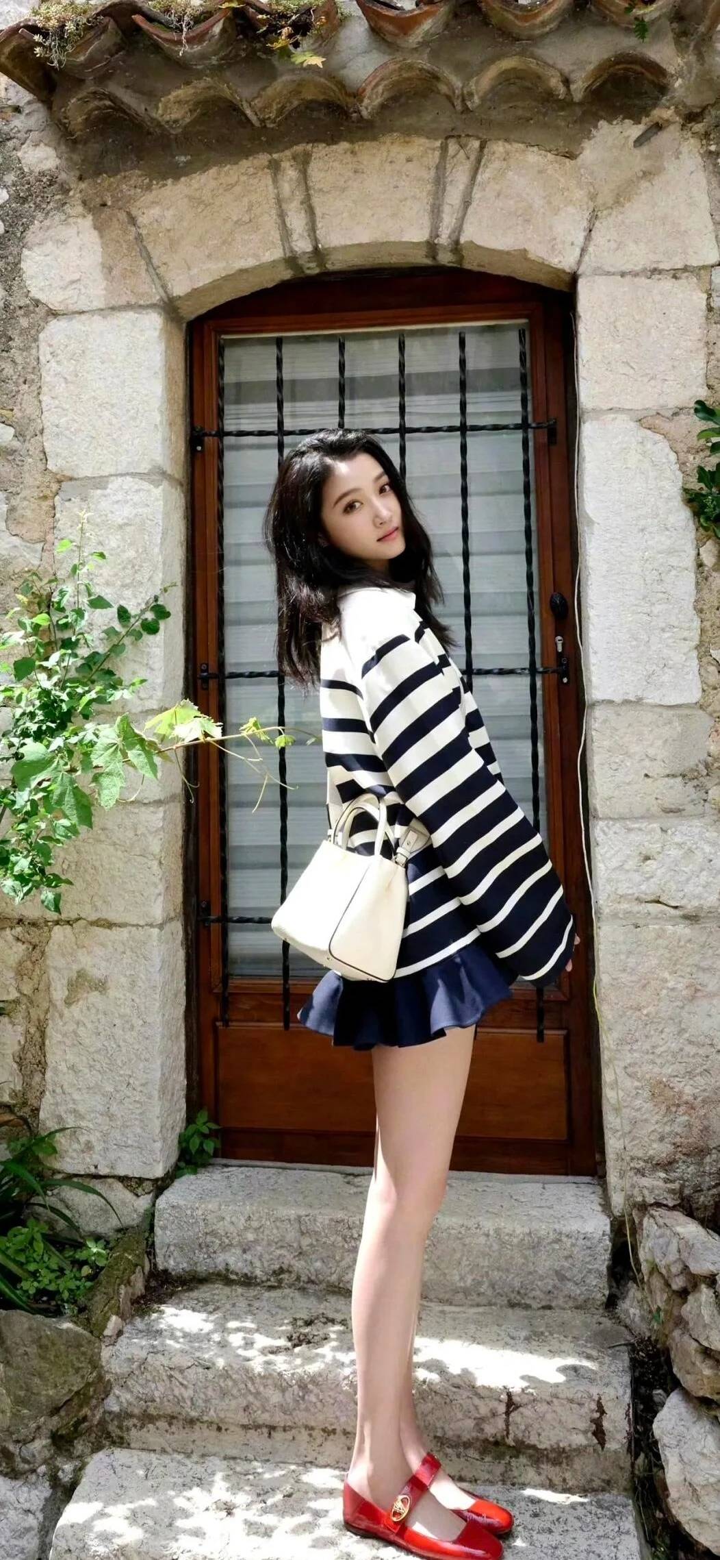 可持续时尚:环保面料与二手衣改造将成为新热点,关晓彤的法式条纹衫造型已展现复古风潮。