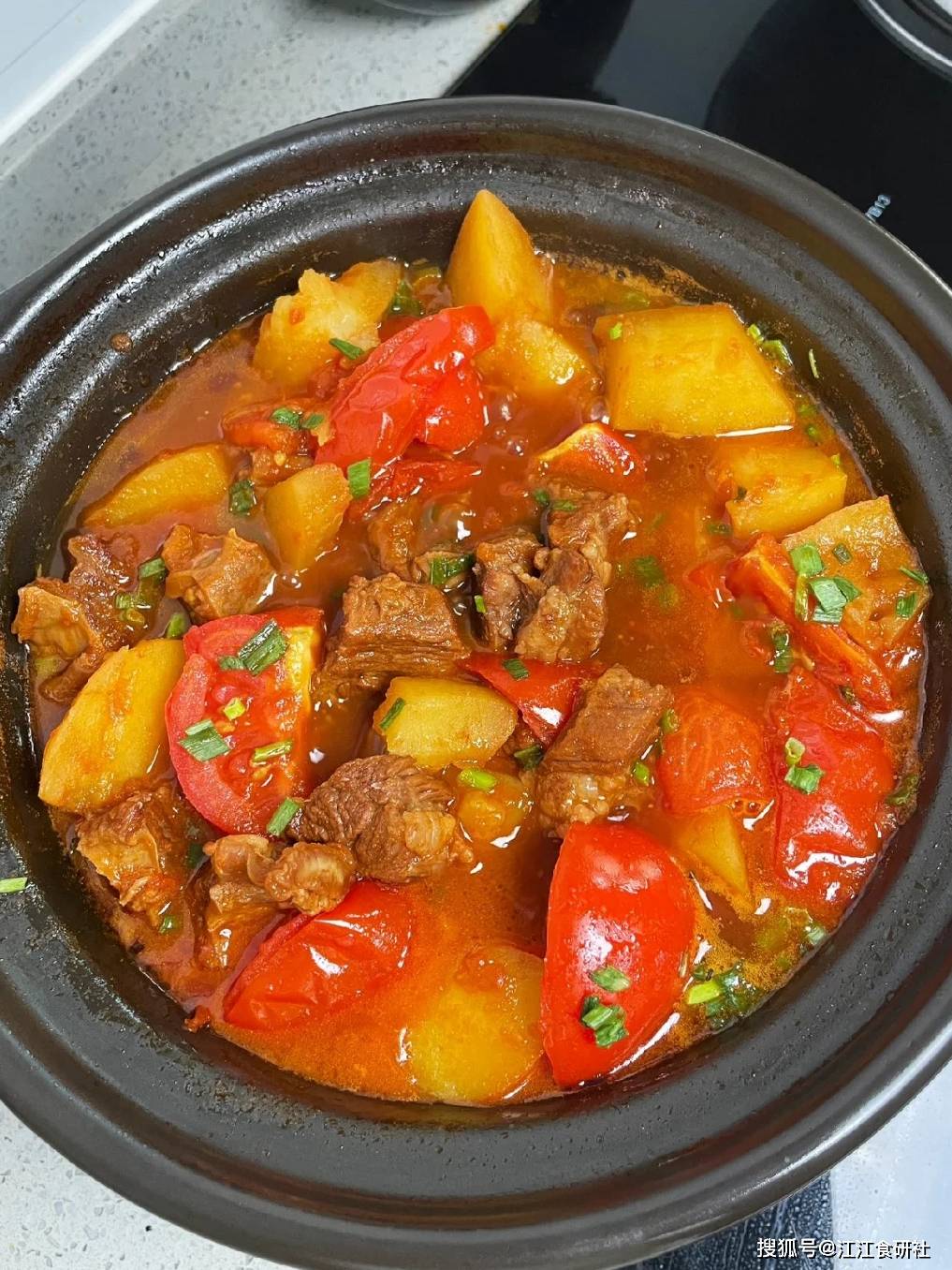 番茄土豆烧牛腩,是个聪明搭配。