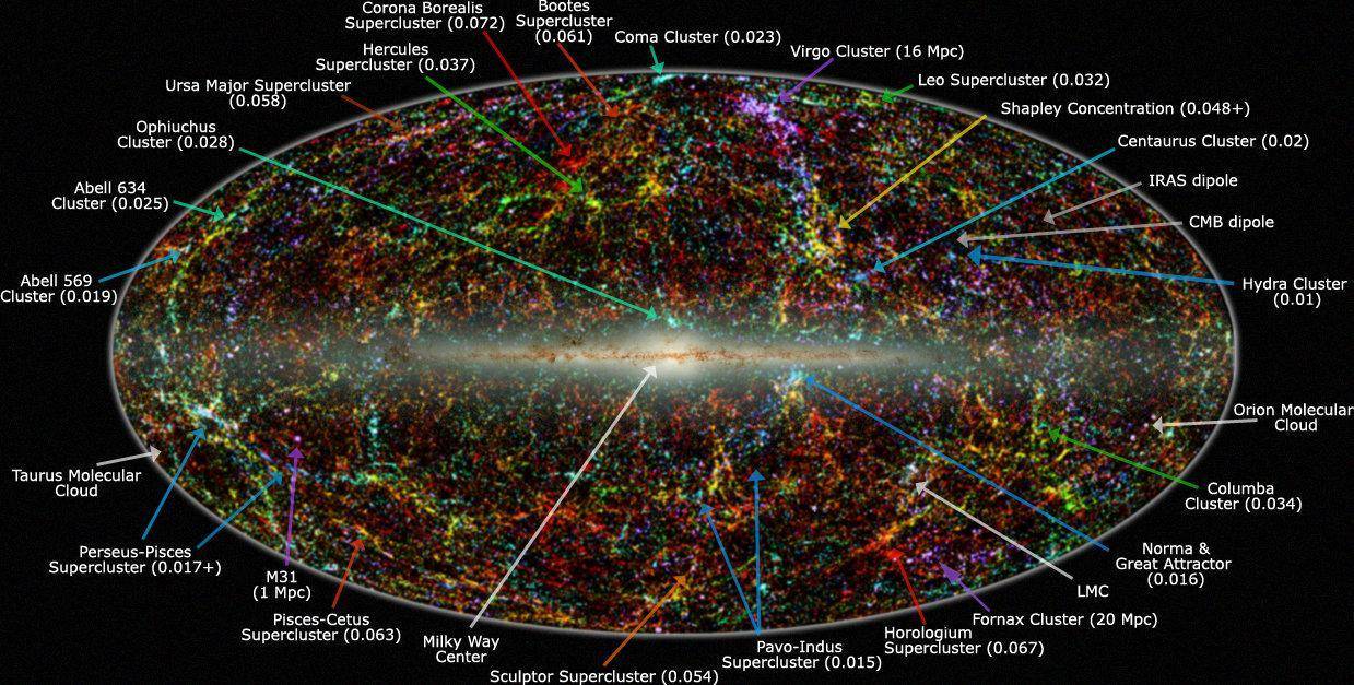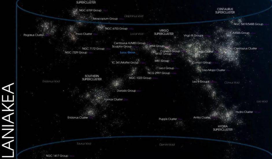 为了搞清楚这一切,2014 年夏威夷大学的天文学家布伦特·塔利重新定义了我们在宇宙中的位置,他不再通过距离来划分疆域,而是通过“引力流线”,就像地球上的水都会流向大海一样,宇宙中的星系也会顺着引力流向某个中心。