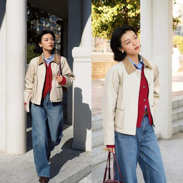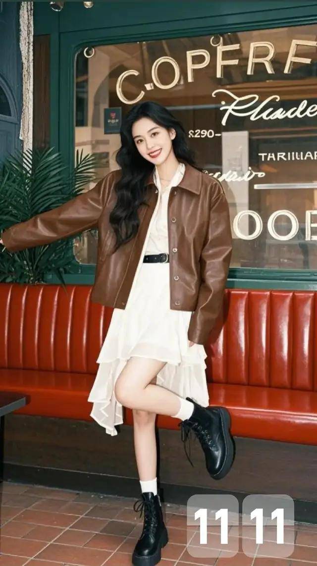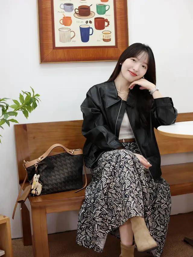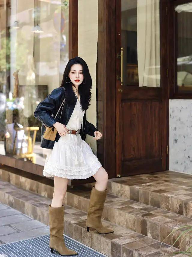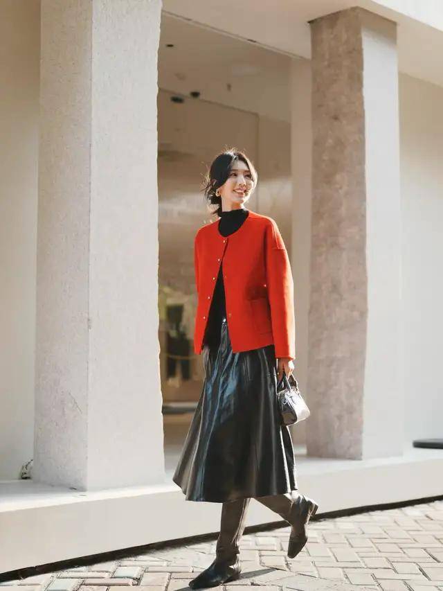 我们可以选择一件红色的小香风外套或者是短大衣外套,搭配上黑色的针织毛衣,下装是一条黑色的皮质伞状半身裙,脚上踩着一双棕色的中筒靴,形成裙中靴穿搭,这种红黑色彩组合经典又耐看,复古洋气。第二章节,如何穿搭让自己变得更温柔?
