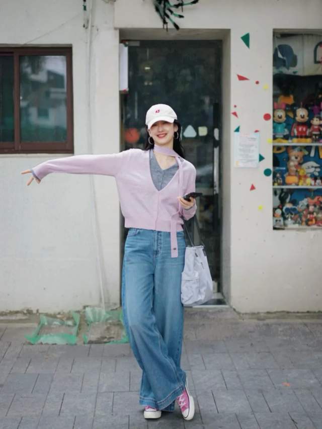 紫色的衣服天生就拥有一种时尚的神秘感,当你穿在身上之后确实很 fashion,而且修饰肤色,显白又显嫩。例如上面用紫色的针织毛衣搭配上紫色的伞状半伞裙,脚上踩着一双白色的浅扣低跟单鞋,这样的打扮出门旅游拍照真的特别出片,还能让你看起来更显年轻有活力。