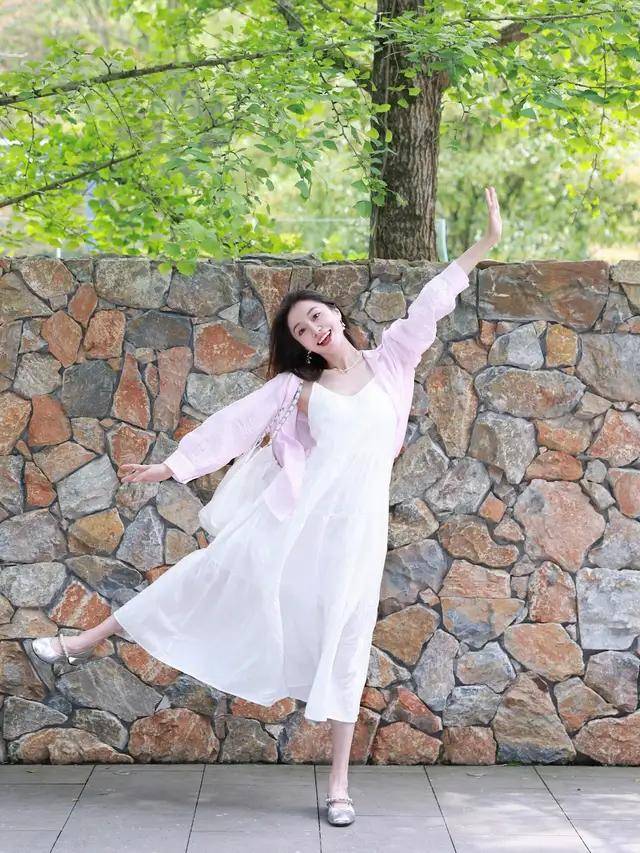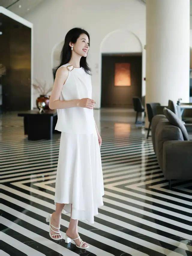 比如上面这位时尚博主,选择一条无袖的白色高腰收腰连衣裙,搭配上一款大波浪的卷发造型,使得她美如初恋女友。第一章节,裙子搭配什么样的上衣更好看?