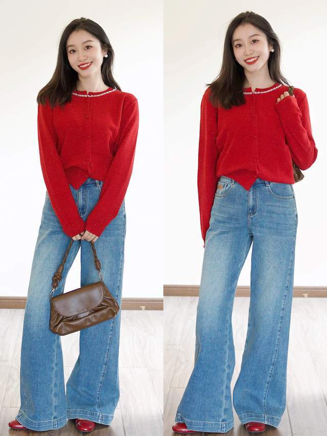 Tips①:红色针织开衫