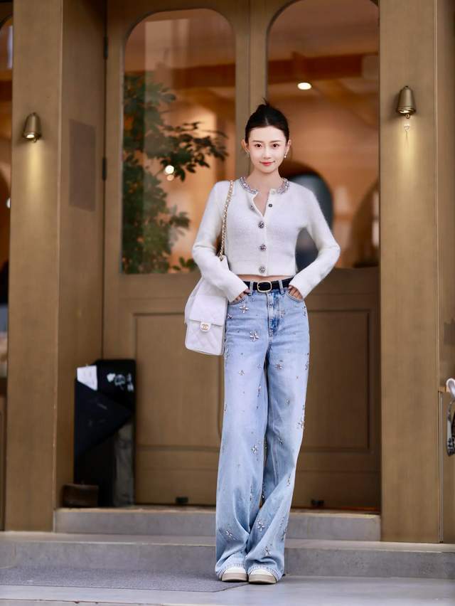 不过这种小面积的配饰点缀,不会显得过于张扬,正好和印花的白色毛衣色彩找到了一个平衡点z
