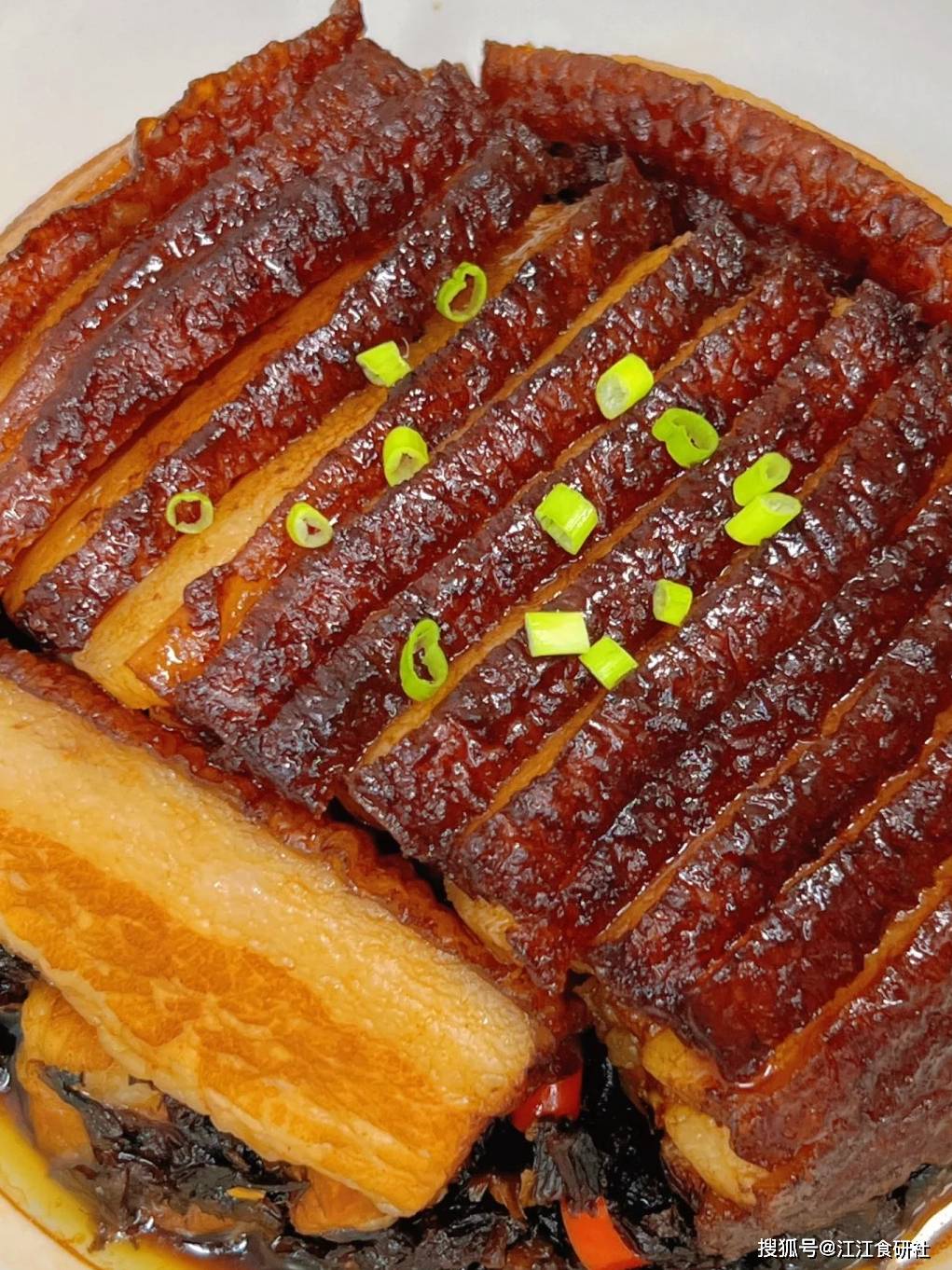 一道皮皱肉烂、红亮诱人的扣肉就成功了。