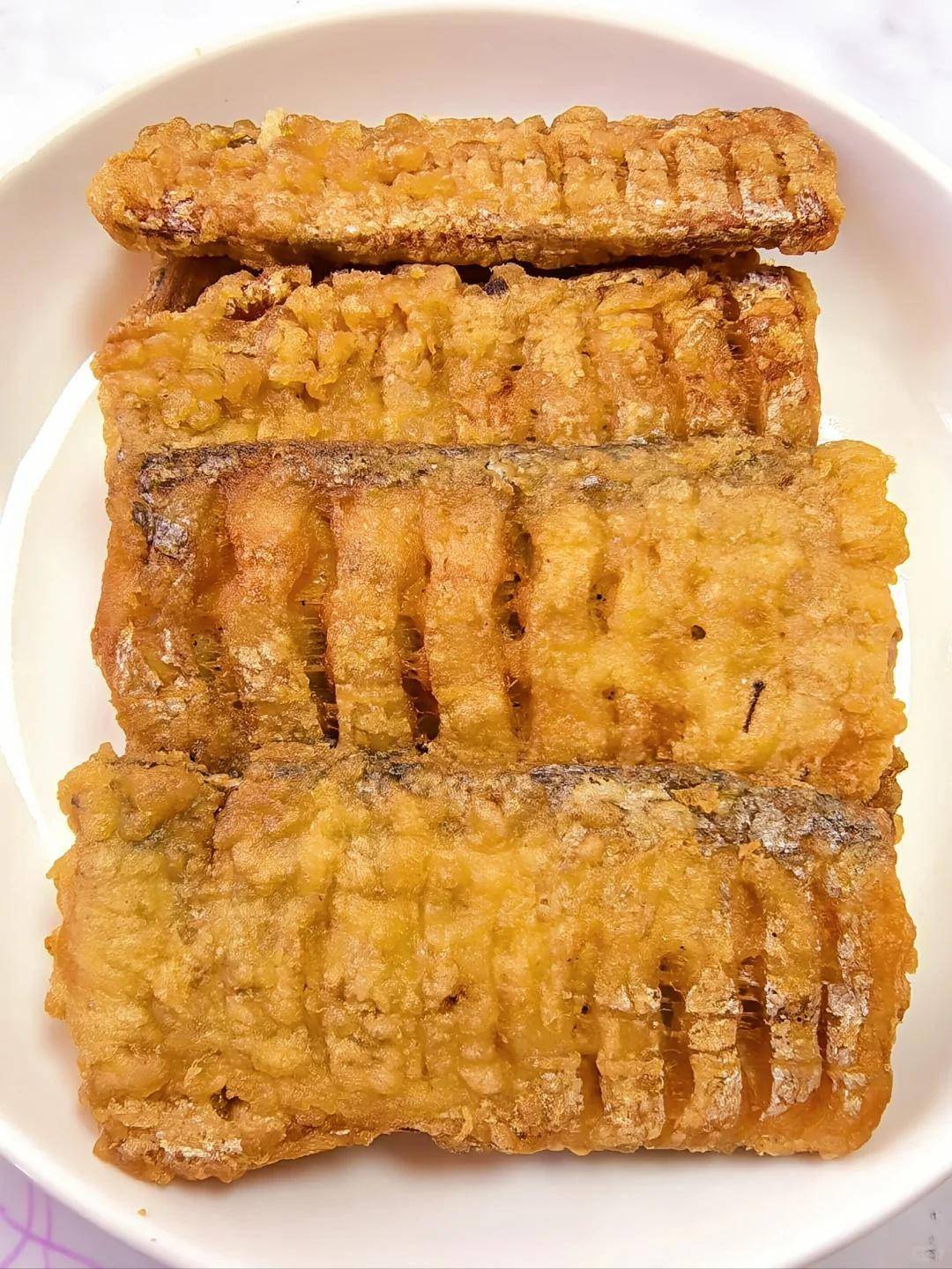 没错,就是面包糠!但不是随便用。咱们要做的这个“酥香炸带鱼”,外皮会形成一层轻盈酥松的脆壳,咬下去“咔嚓”作响,里面的鱼肉却保持鲜嫩多汁。鱼刺经过高温炸制变得酥脆可食,特别适合老人和孩子。