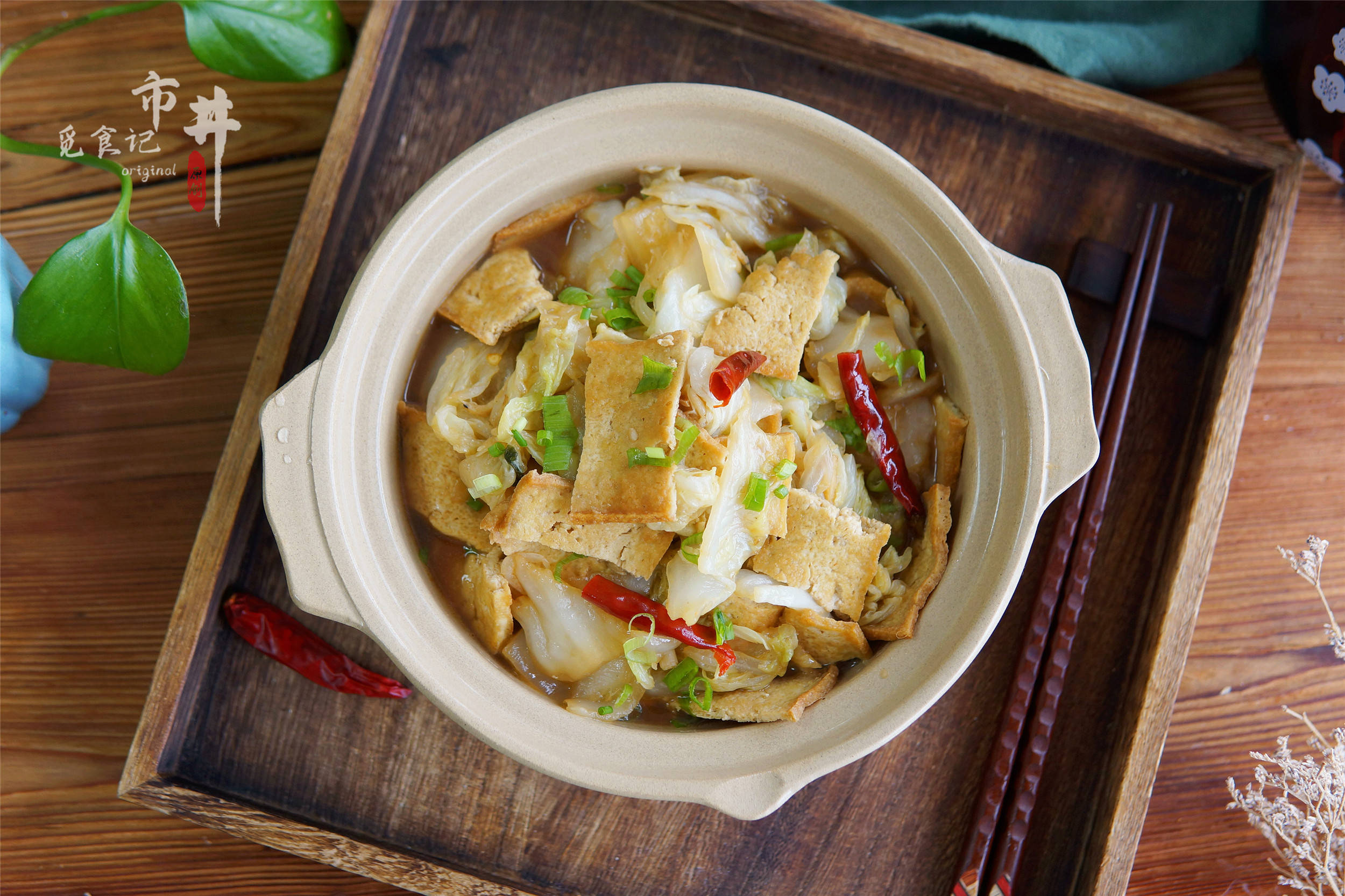 五花肉煸出油脂,加冻豆腐、白菜炖15分钟;
