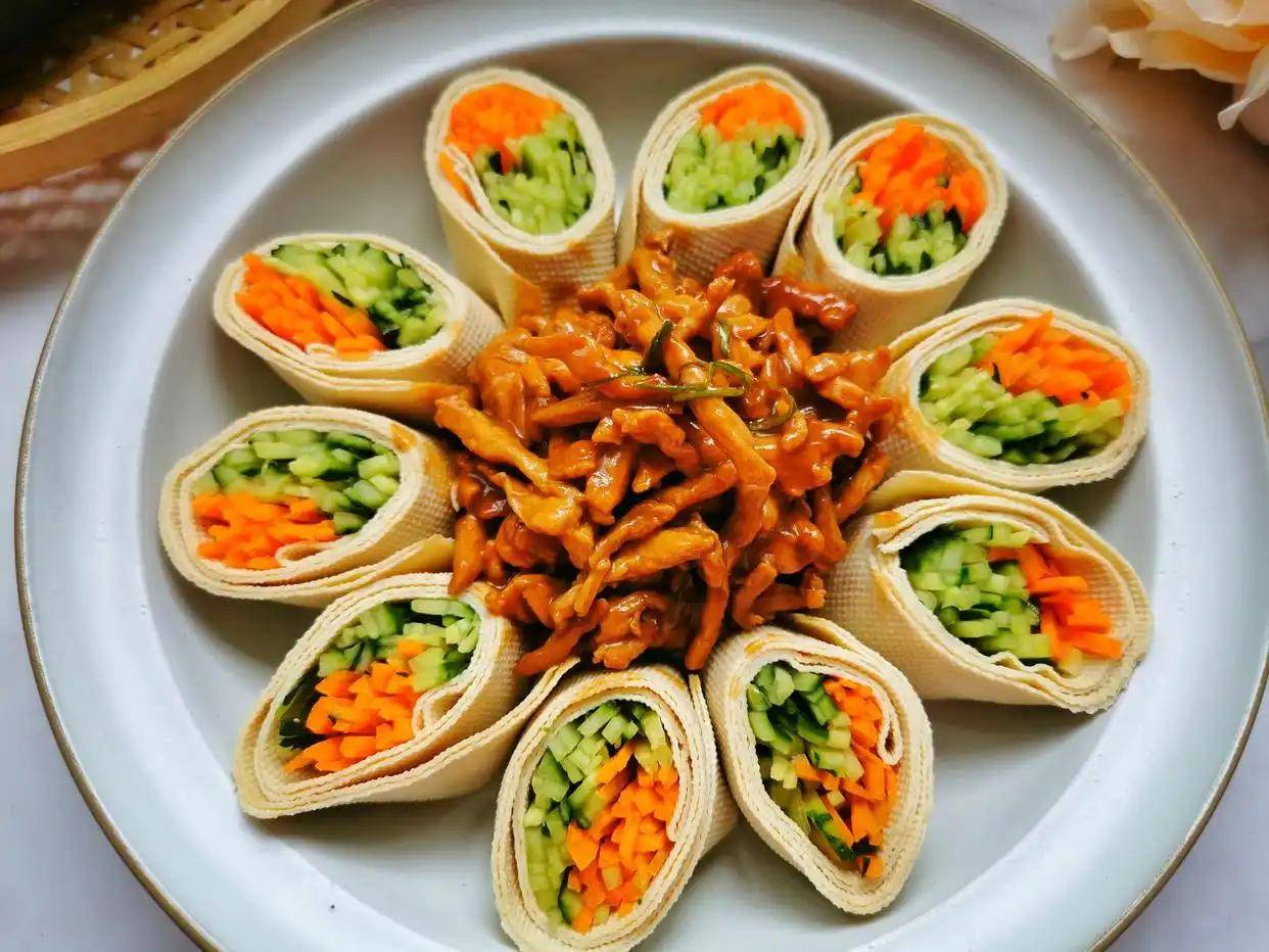 特点:酱香浓郁,豆腐皮卷肉丝,清爽解腻。