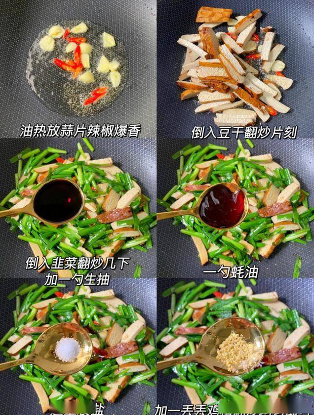 韭菜炒豆干是一道简单易做的家常菜,口感清爽,韭菜的辛香与豆干的醇厚相互搭配,味道十分美妙。这道菜富含蛋白质和膳食纤维,有助于促进消化,增强免疫力。