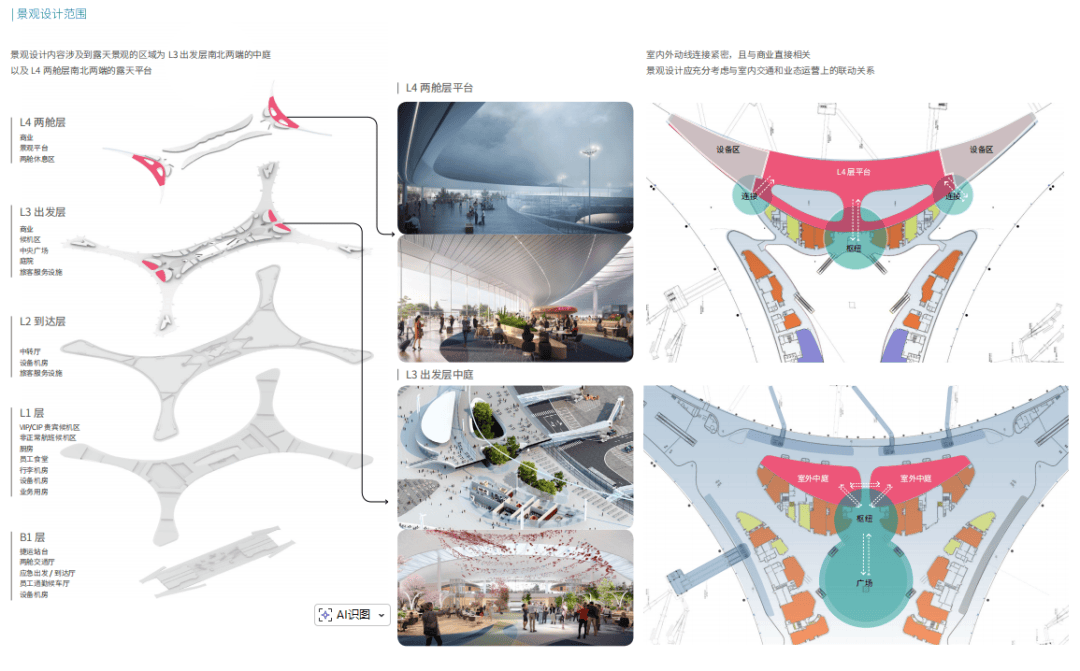 空间效率优化:根据客流密度动态调整功能区域,例如将高频使用区域(如观飞平台)设置于靠近安检的黄金位置,减少旅客移动距离。