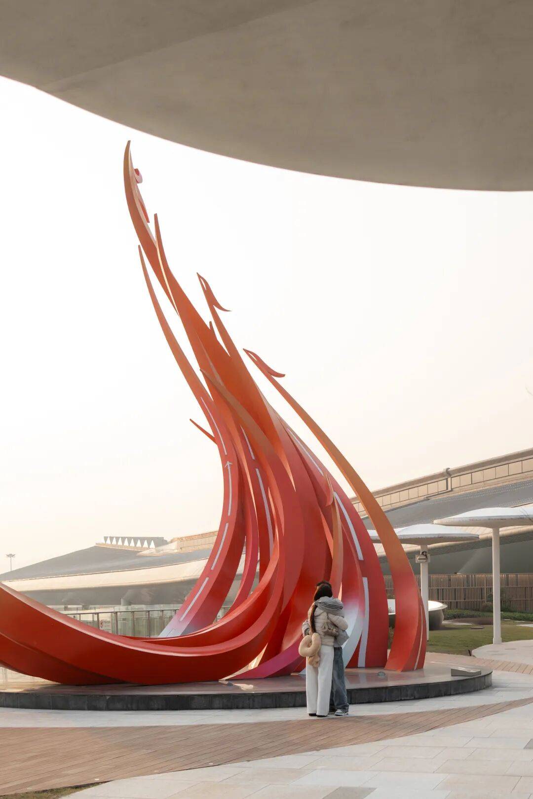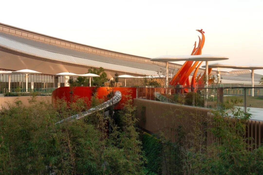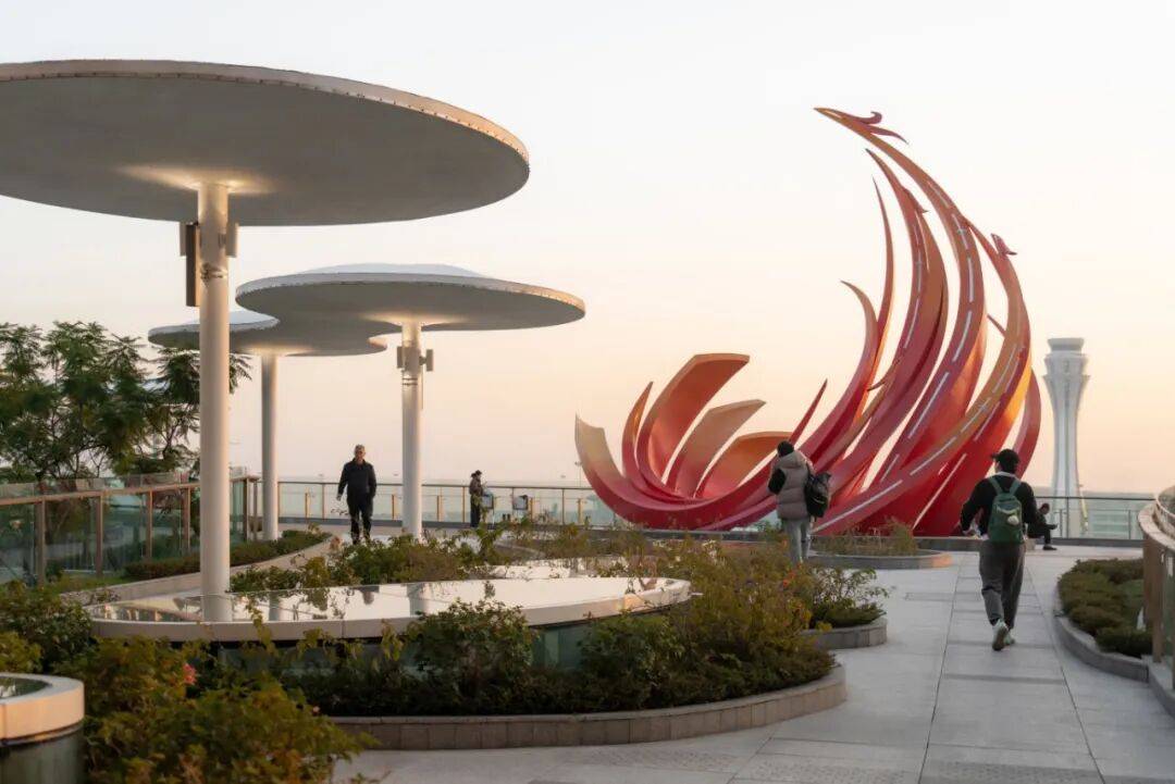 “火凤凰”精神图腾:L4两舱层的观飞平台以“流云”为灵感设计廊架,并设置“火凤凰”主题雕塑,既呼应重庆“火炉”气候与热情的城市性格,又通过空中地标强化航站楼的辨识度,成为旅客必打卡的视觉焦点。