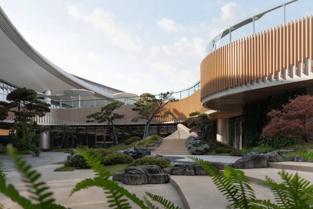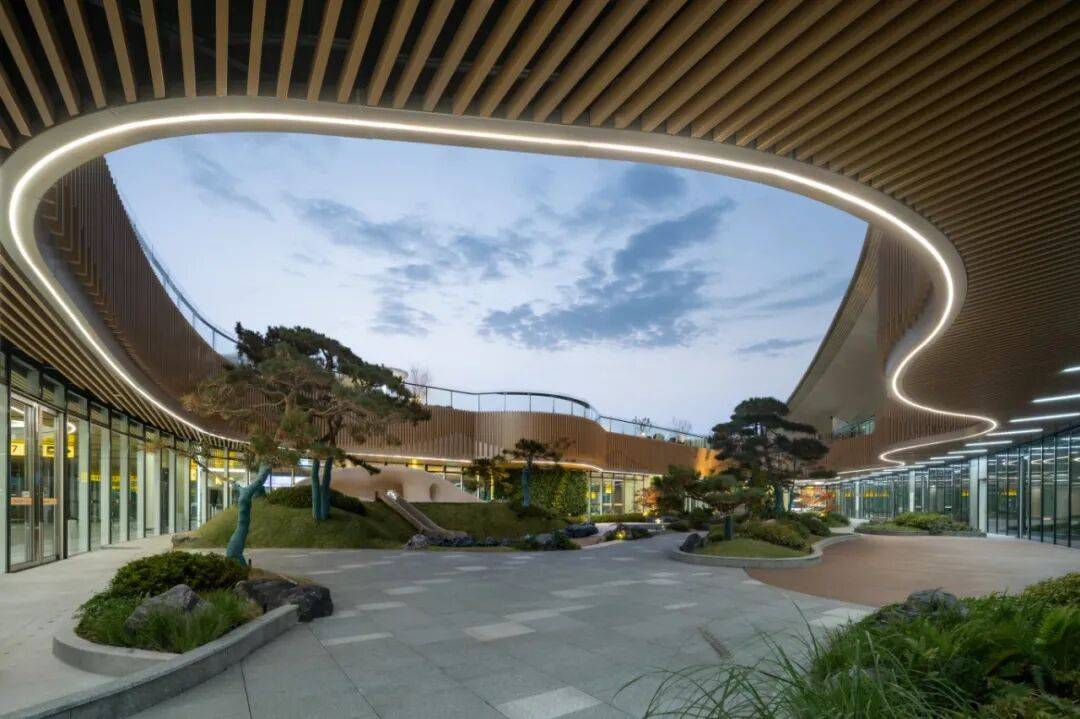 罗盘箱装置:中央大厅设置飞碟造型的3D打印机器人罗盘箱,集成通风、消防等功能,表面应用汽车喷涂技术,成为科技与艺术的视觉焦点。