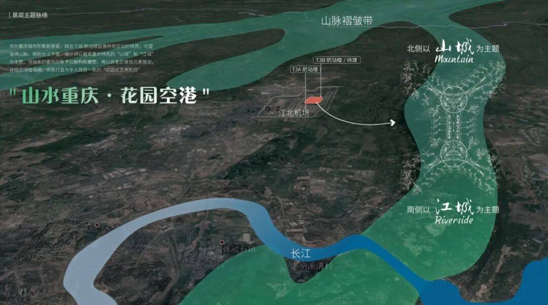 重庆江北国际机场T3B航站楼的景观设计以“山水重庆”为核心主题,由DEAL德珈筑境团队主导,融合地域文化与未来科技感,打造了兼具功能性与艺术性的空间体验。以下是主要设计亮点: