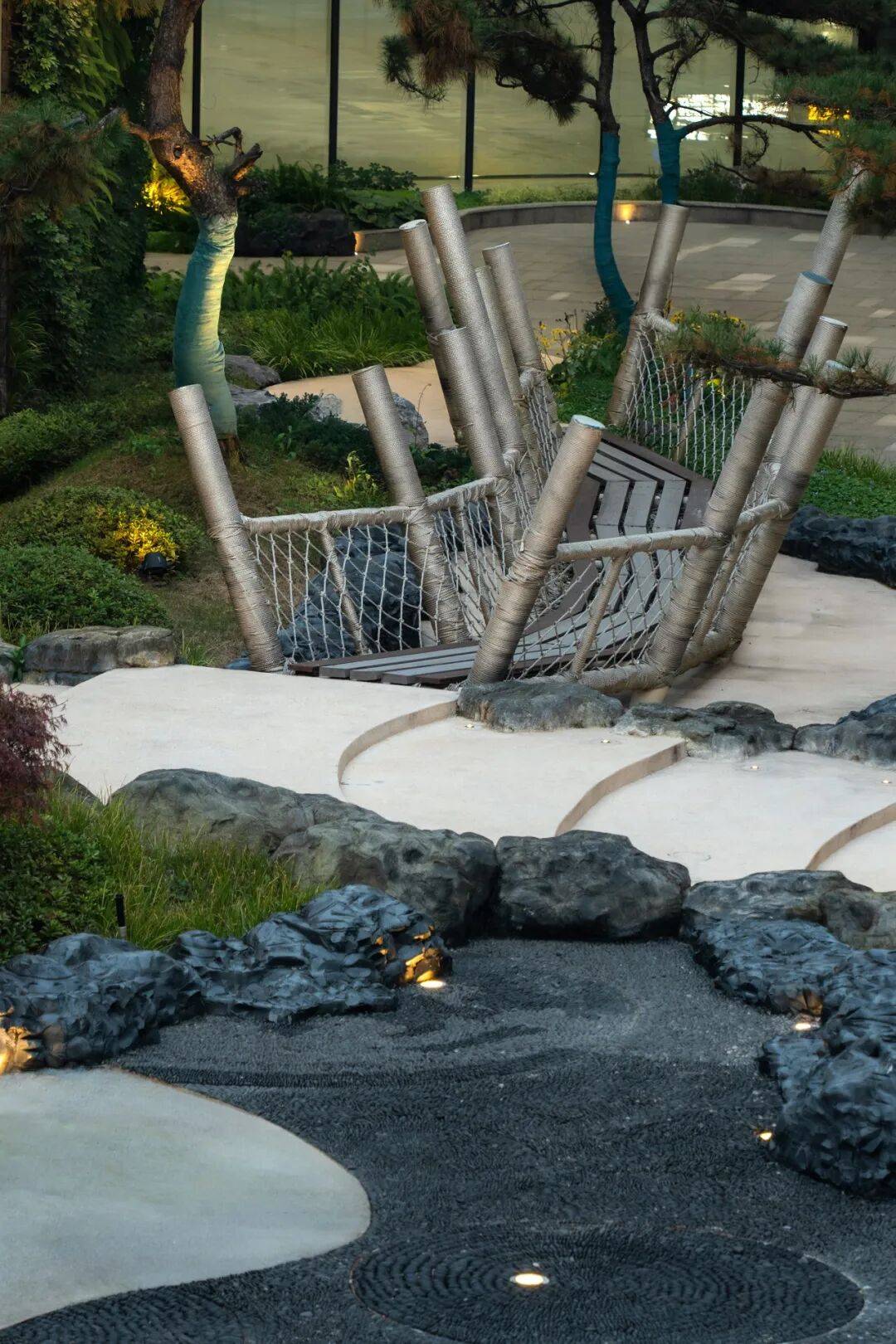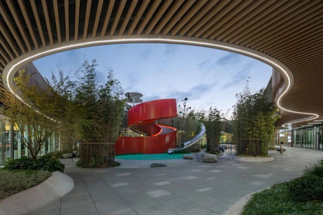 复园·乐园:通过层叠绿植、山形景观小品及儿童活动设施,模拟重庆山地地貌,结合罗汉松、蓝花楹等本土植物,营造立体生态空间。