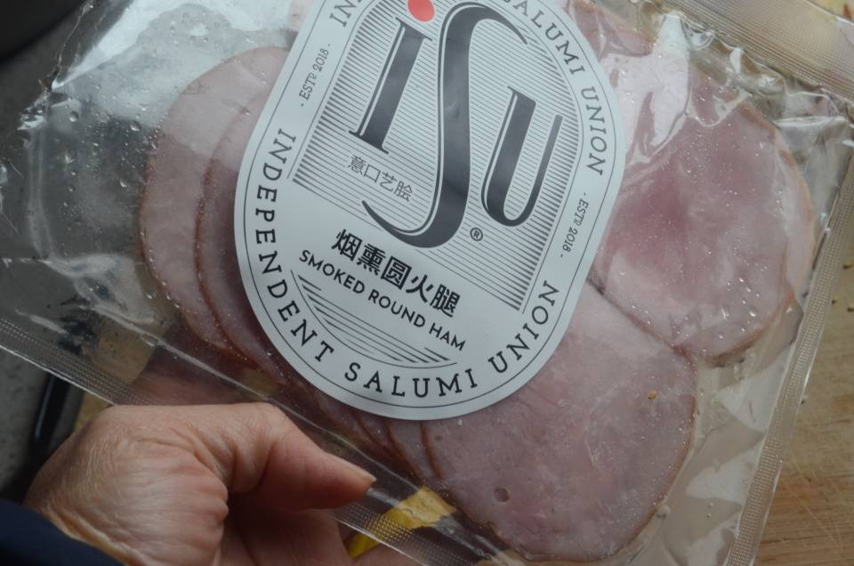 夹馅部分:【ISU 意口艺脍】烟熏圆火腿、冠利俄式酸青瓜、冠利凯撒色拉。