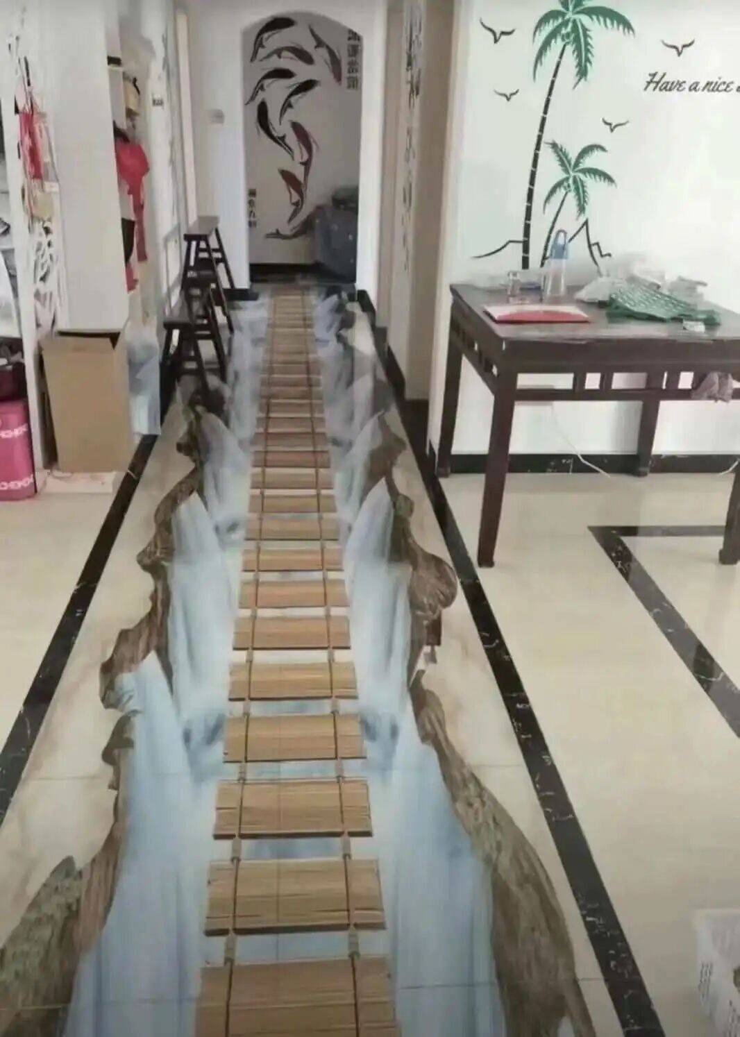 看着这3D立体瓷砖,真的很难理解为什么要在家里安个悬崖索道出来。