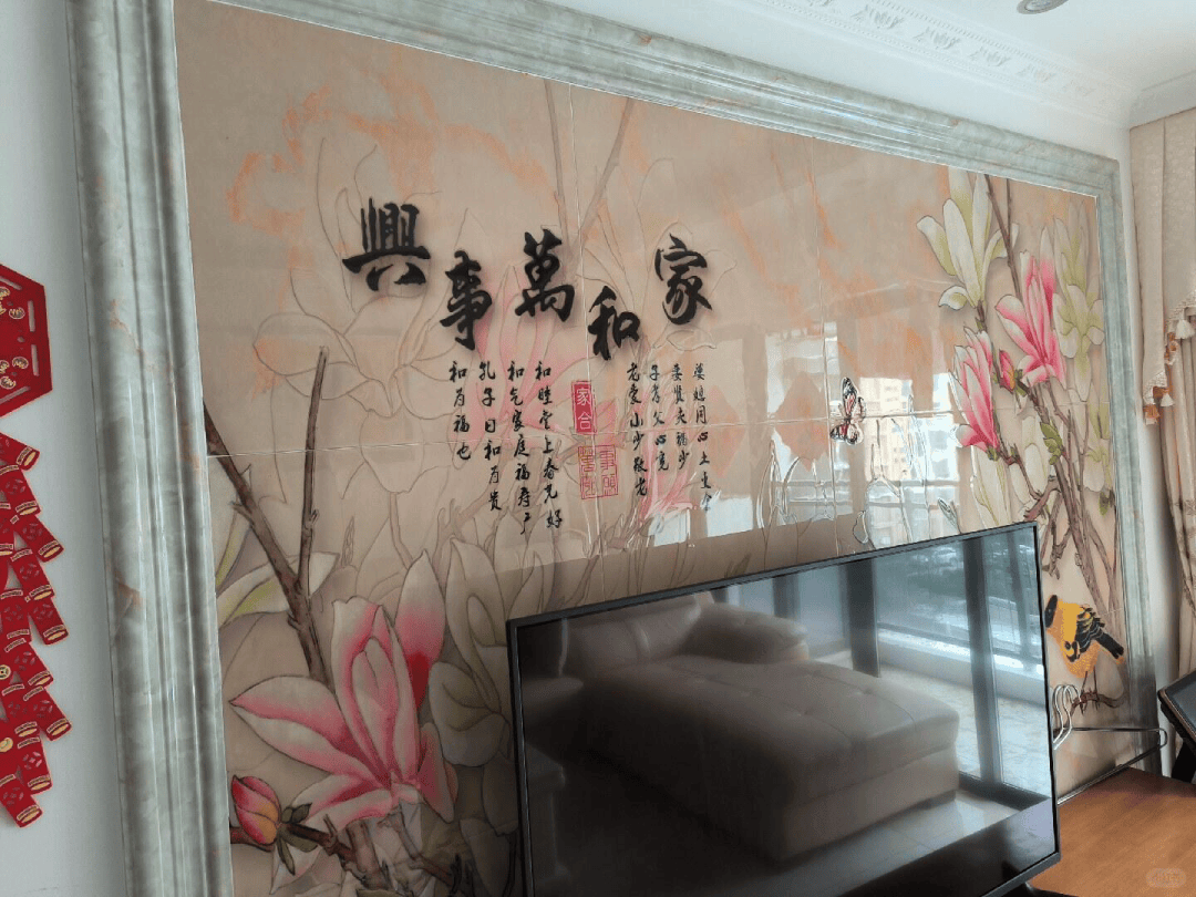 每家都有全国统一的开关装饰贴,全国统一的电视背景墙。