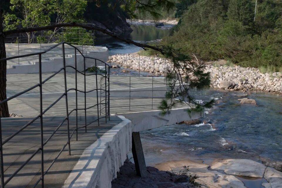 这种感受构成了这处观景平台设计的认知背景,并在我们勘察现场时形成了设计的直觉:它将这条为自然勾勒的下划线的延续,一处回应河流和河床石头的空间,一处模糊了自然和人工边界的场所。