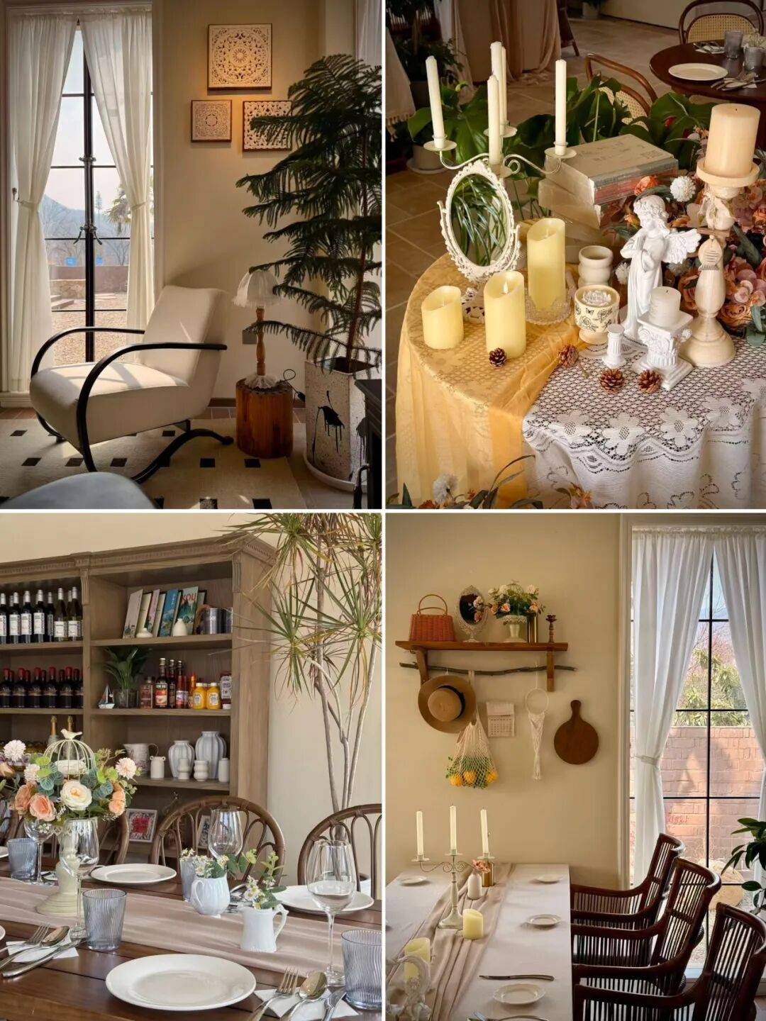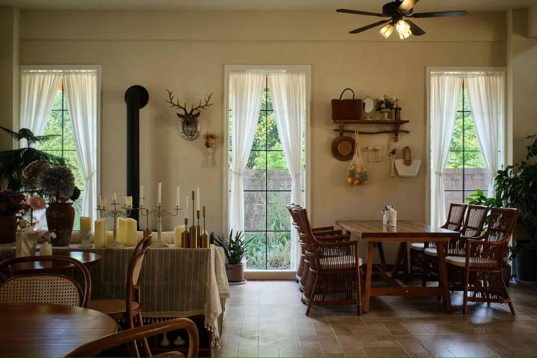 风格统一:以原木、藤编为基底,搭配手工砖、艺术涂料,营造温柔治愈的南法乡村氛围。