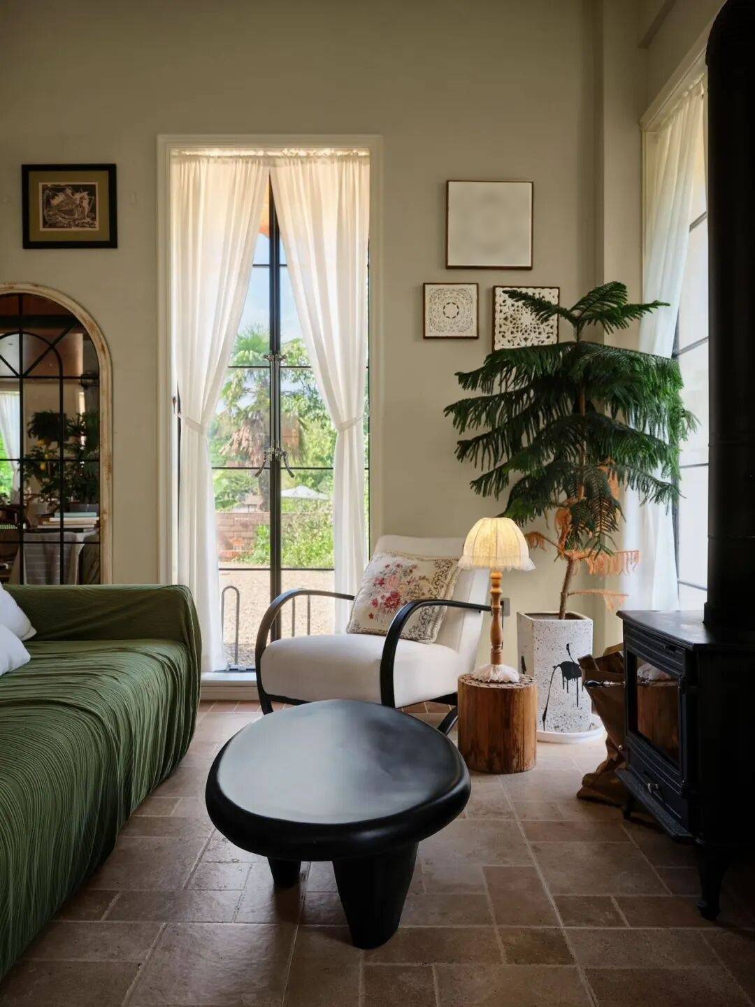 将原有狭小窗洞替换为大面积落地玻璃,让室内空间与庭院景观无缝衔接,自然光线肆意涌入,目之所及皆是绿意。