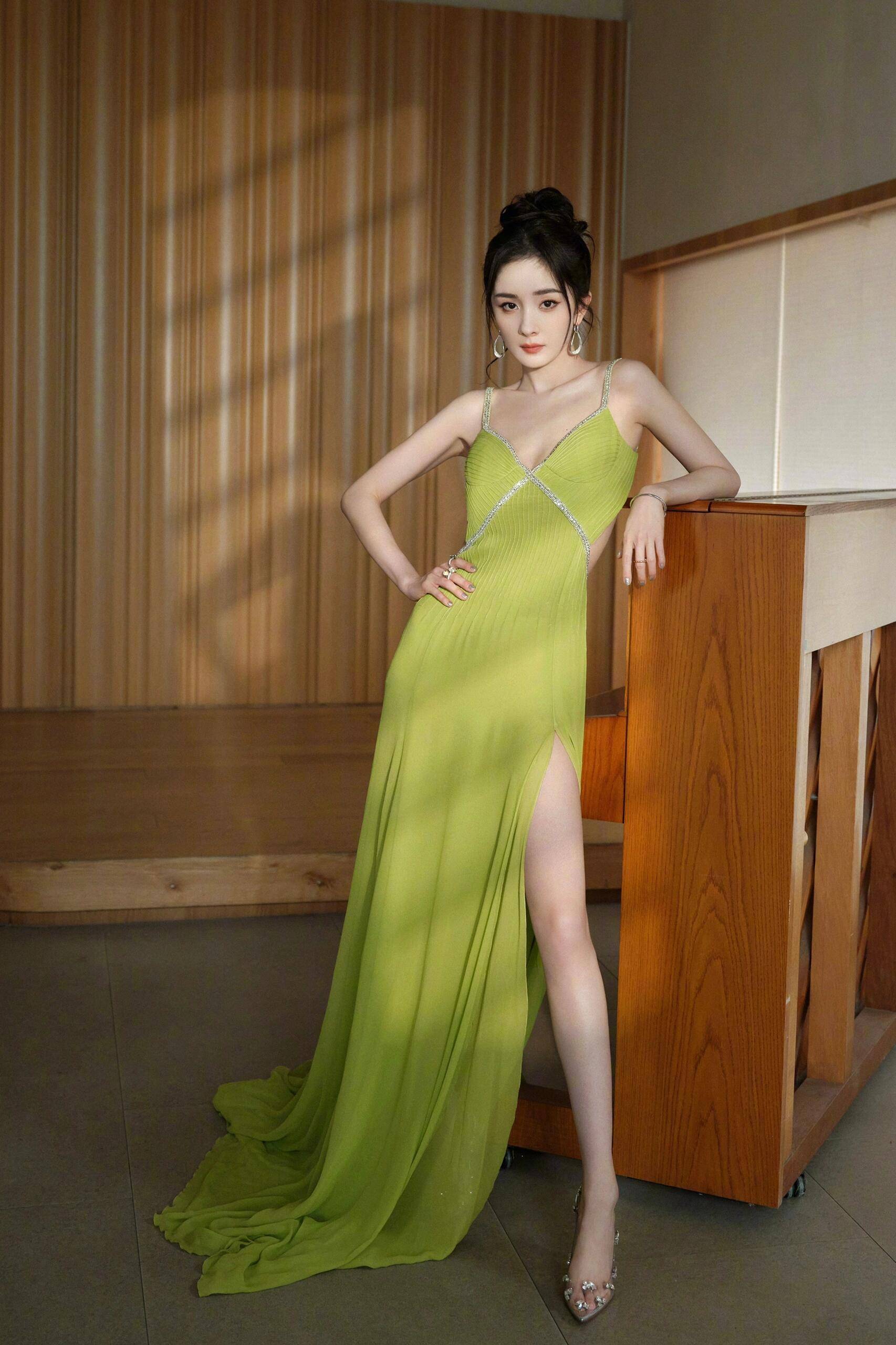 2. 身材管理天花板:无论是开衩裙、吊带还是短款夹克,杨幂的身材都能完美驾驭,成为“穿衣模板”。