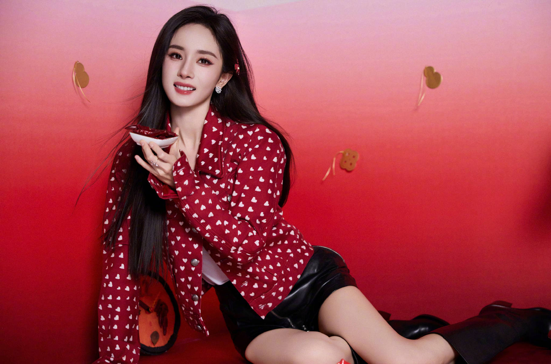 杨幂穿橘红色无袖裙明媚动人 双手抱拳送祝福喜气洋洋[60P]