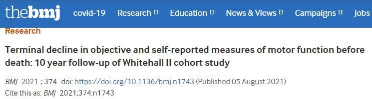 2021年由权威期刊《英国医学杂志》刊登的一篇相关研究发现人死前10年,身体就已经发出信号,而这个信号就是运动功能的变化。