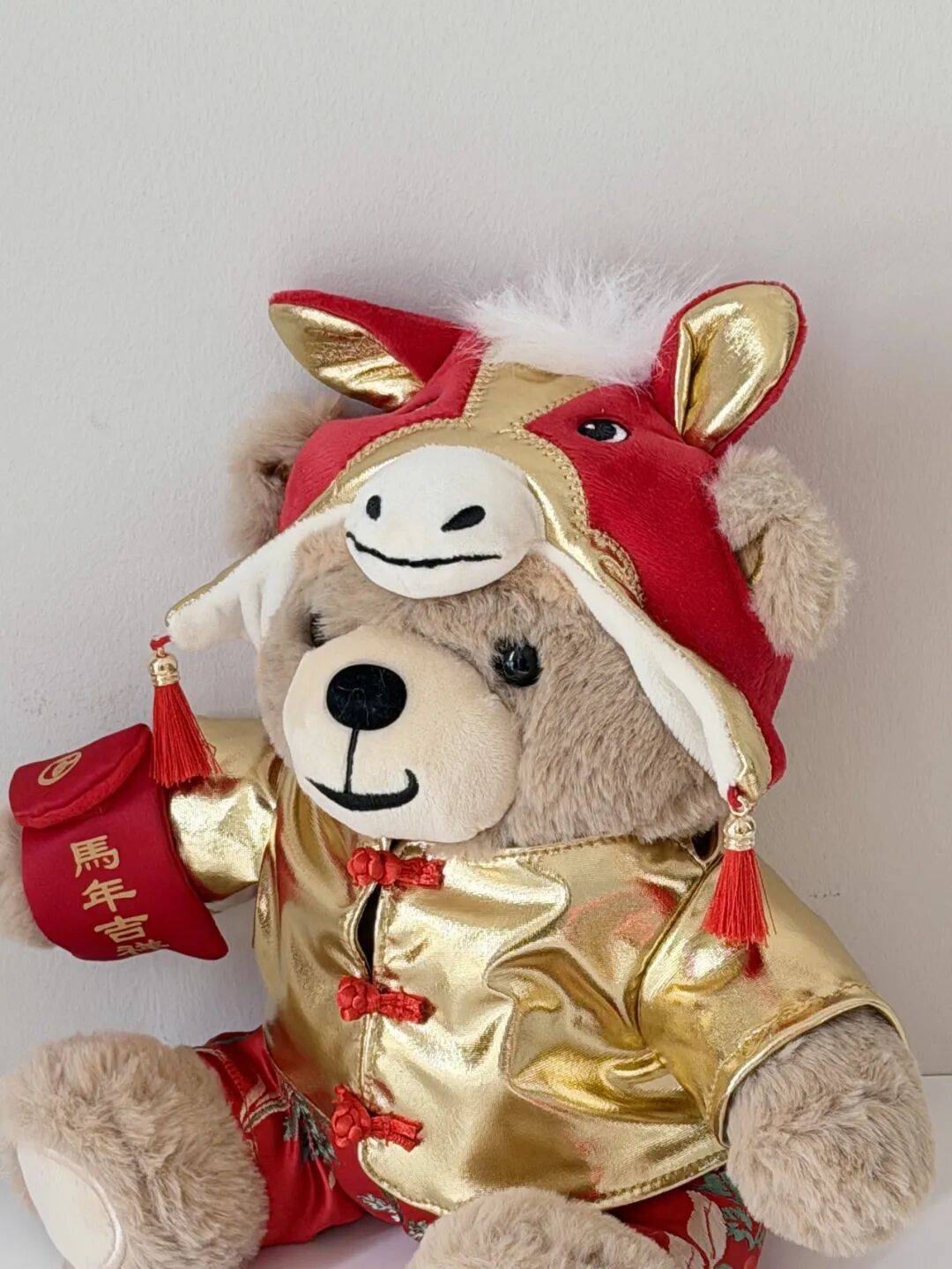 G Bear这次穿上了金灿灿的中式褂子,戴上红色的“马头帽”,和小巧的小马挂件十分呼应。盲盒和糖果则多了一份收礼物的仪式感,猜猜范主有没有抽到隐藏款?