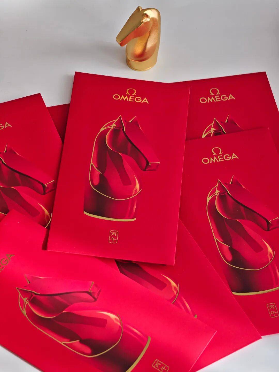 欧米茄的马年红包醒目极了!封面上,红色马首雕塑昂首挺胸,金色的勾边勾勒出矫健的造型,再盖上“丙午”的印章,中式高级感溢出屏幕。
