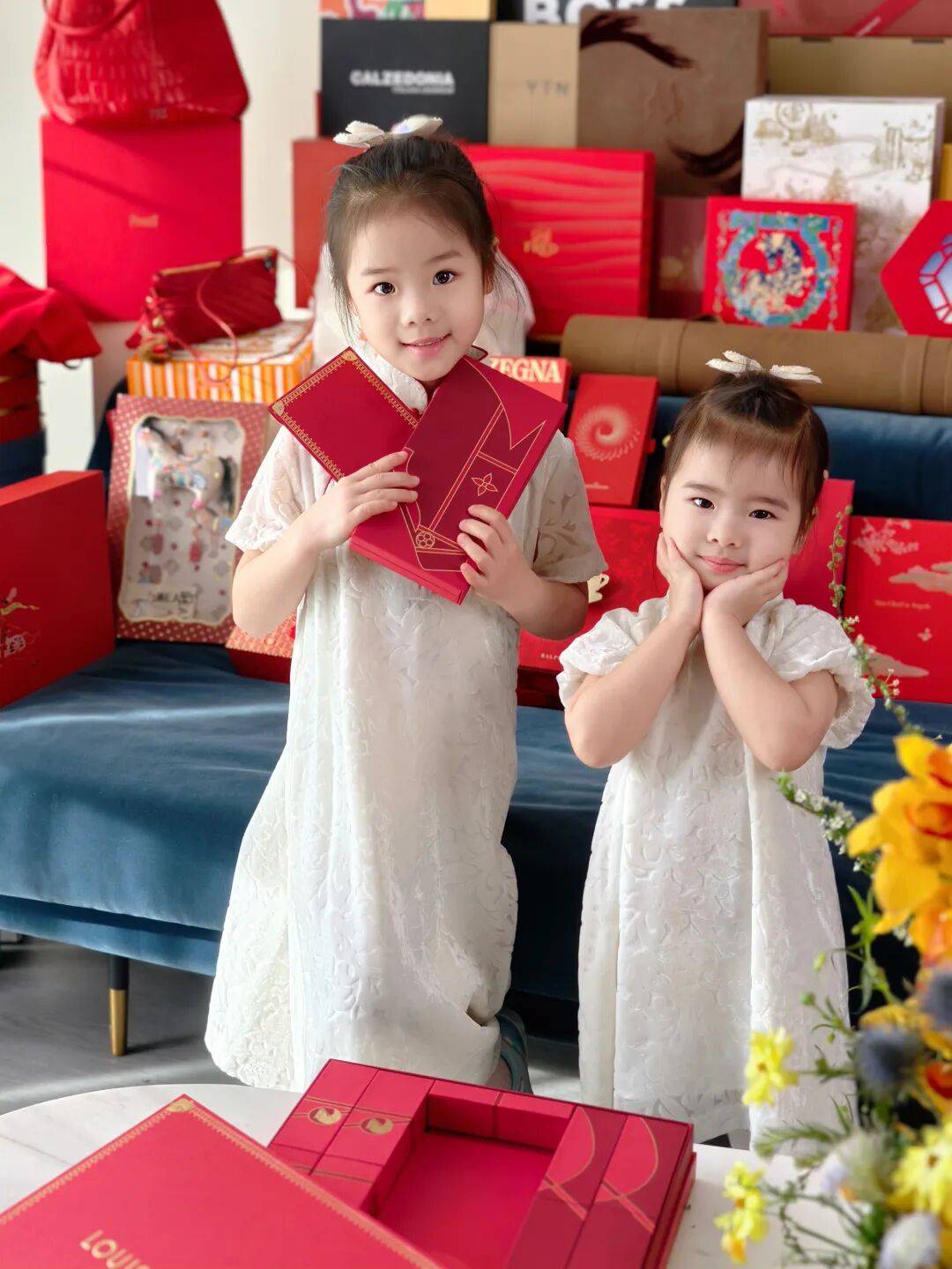 LV漂亮的大红包,也让她们忍不住卖起了萌,想要提前收压岁钱~