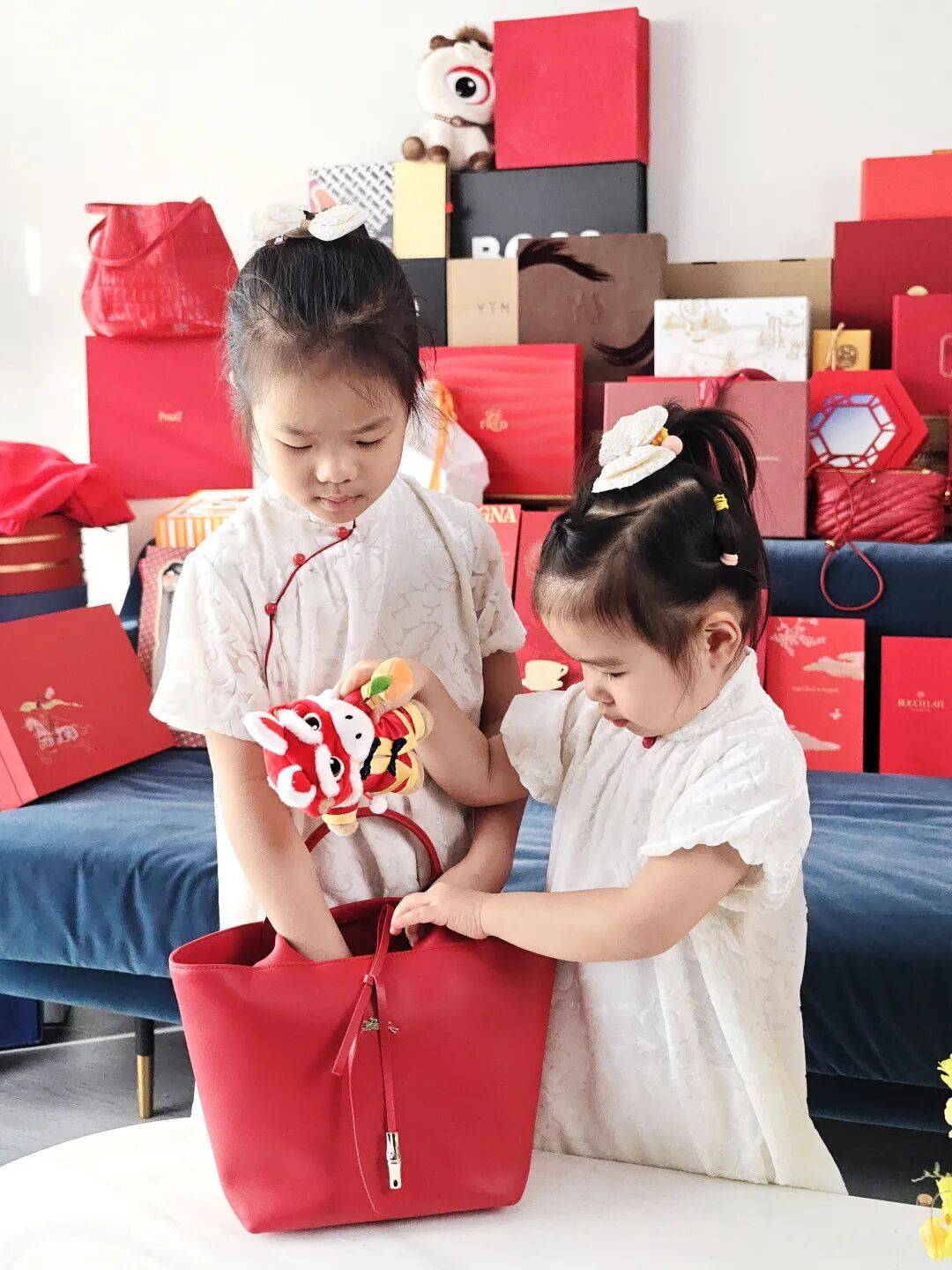 珑骧今年的“红包”很有诚意,是一只真正的Le Roseau马年限定“红包”!最开心的是咩咩和兔兔,争着给“大红包”里塞“小红包”,以及心爱的G Bear,特别有过年仪式感。