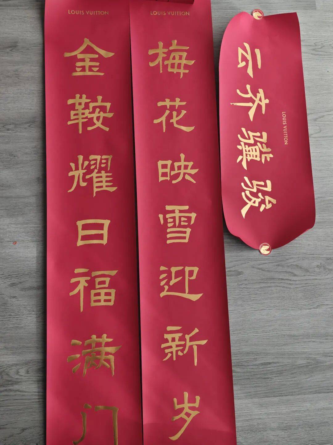 礼盒里还有一套金灿灿的春联,贴在家里感觉一整年都能红红火火。