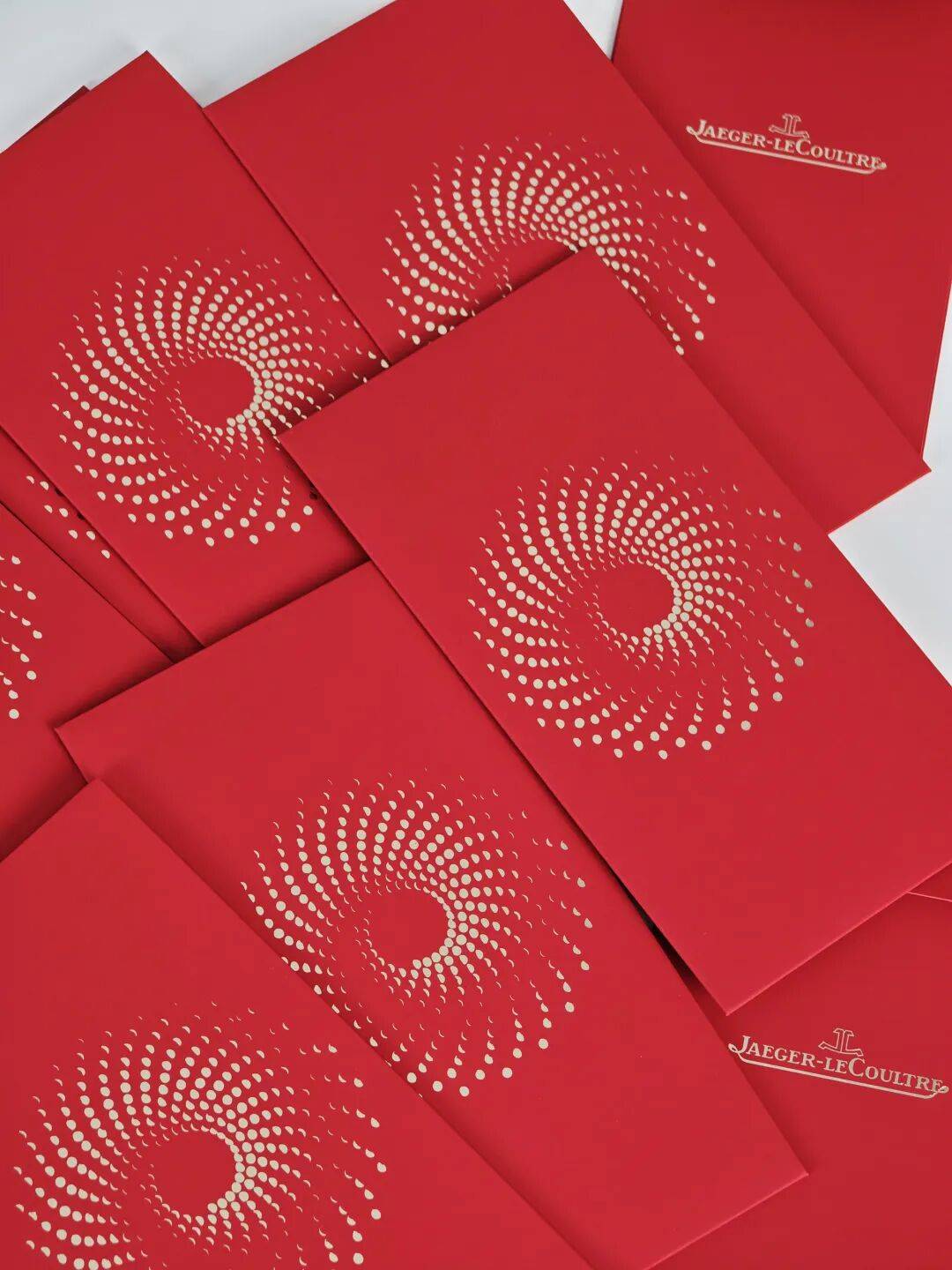积家今年的红包礼盒设计很有深意。红包上放射状的圆点图案,有一种时间的律动感,既像星空又像机芯。色调也是非常正的大红色,完美诠释了积家对细节的极致追求~